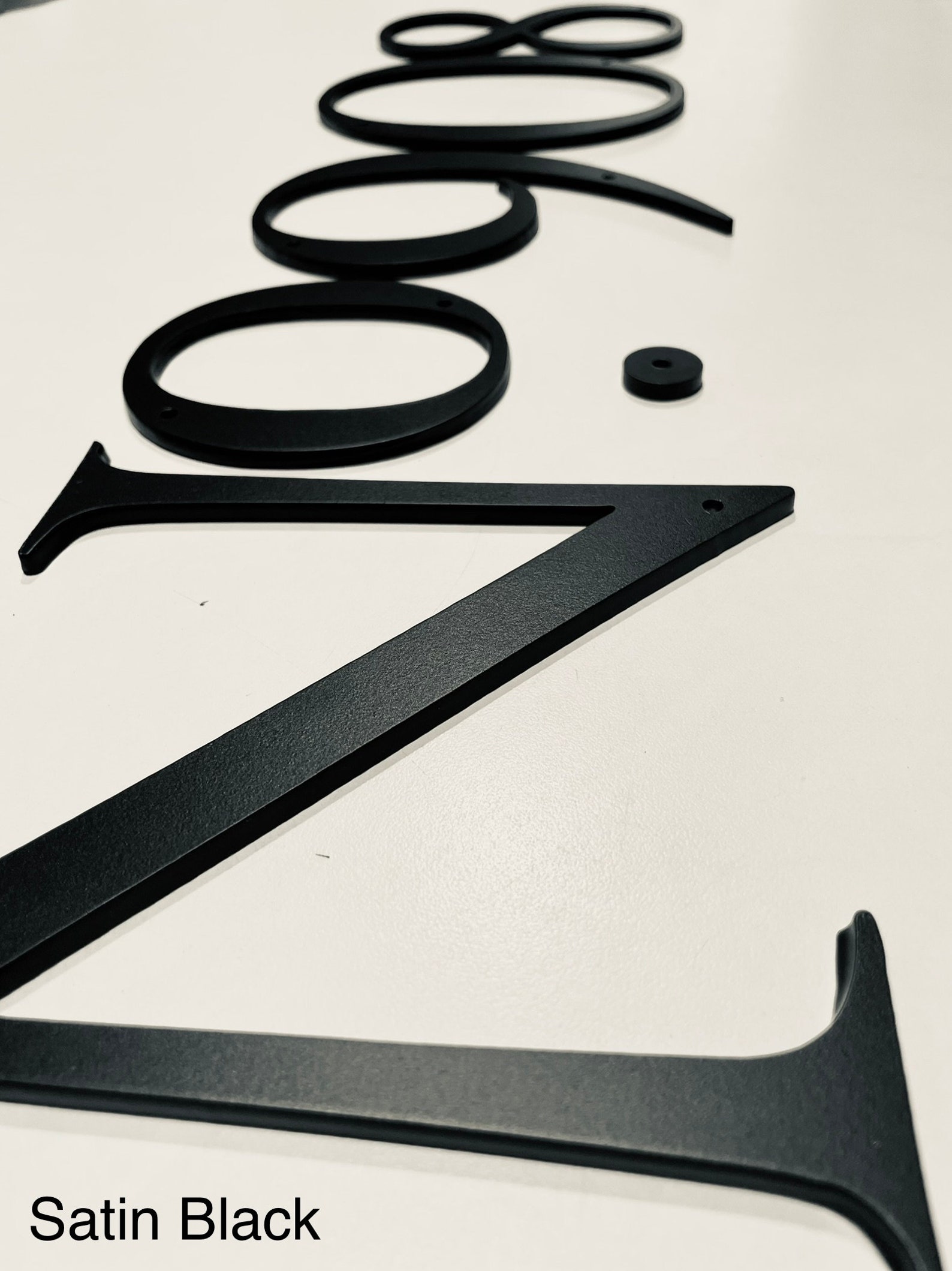 These numbers come with our premium exterior grade powder coating. Our standard colors are Satin Black, Satin Copper, Gold|Brass or Metallic Bronze.