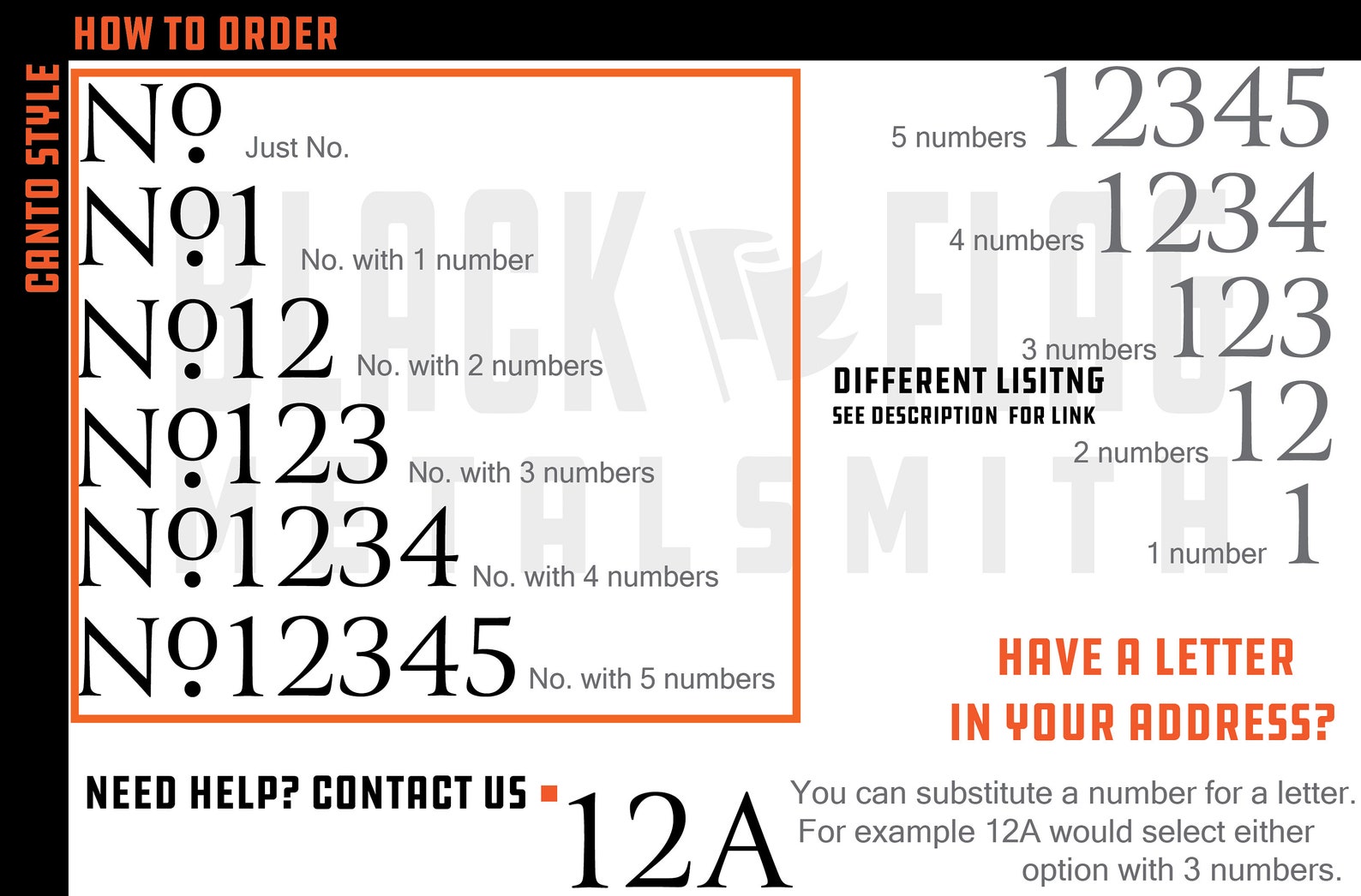 These house numbers will be made in our custom Canto style font shown in the listing photos.