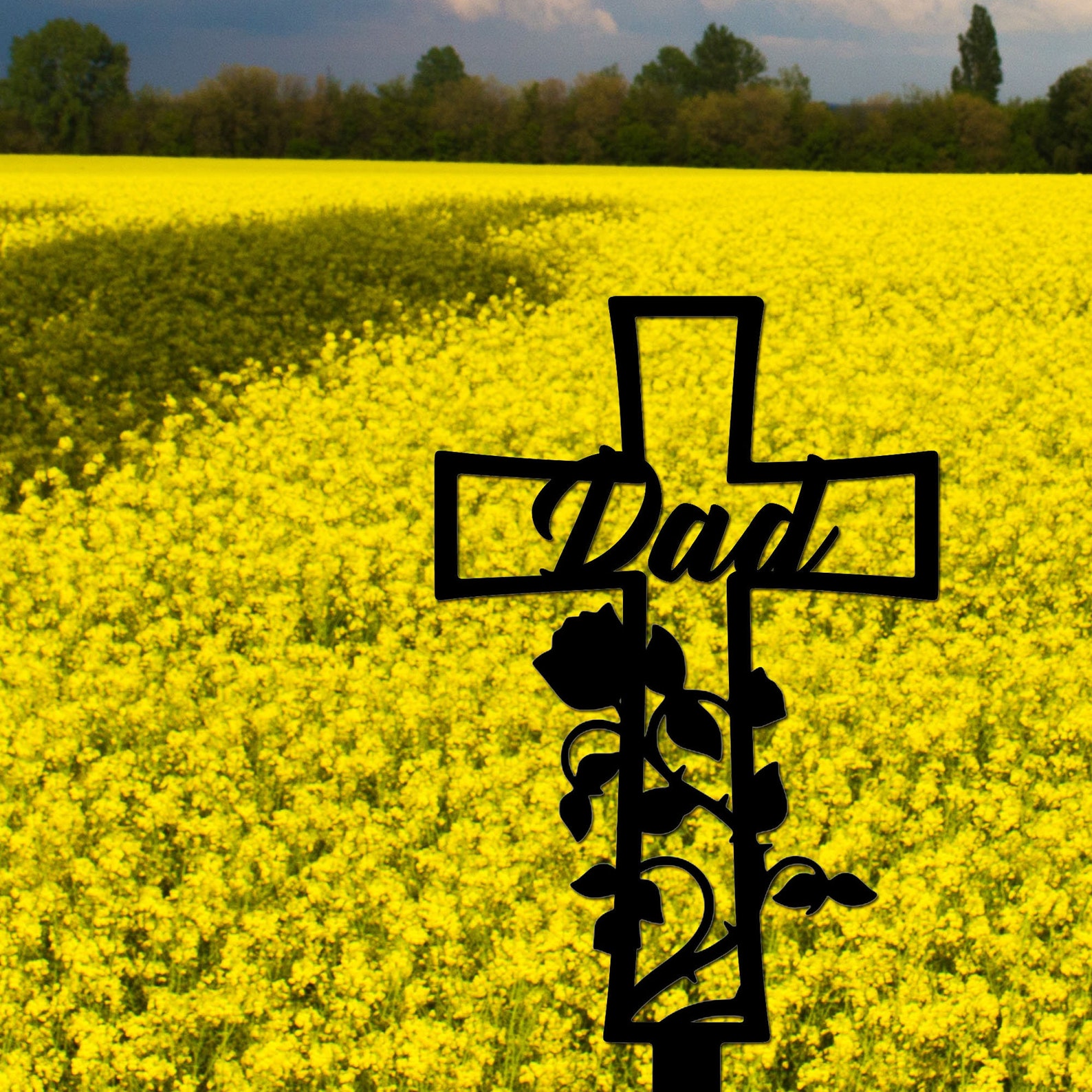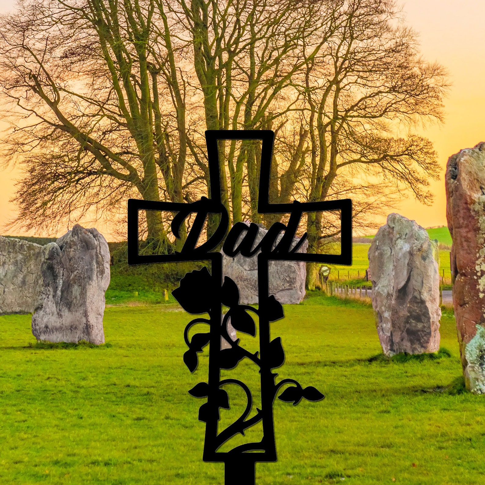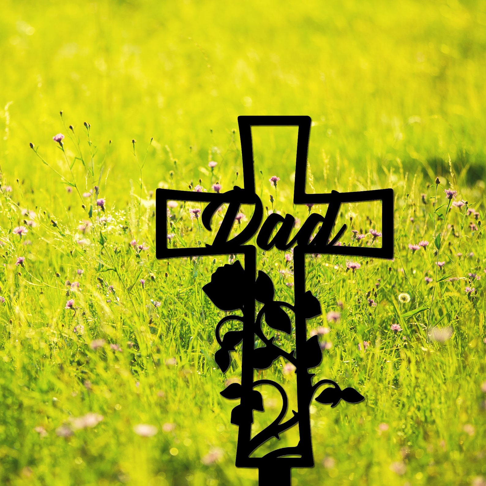 Metal Memorial Cross Stake, Personalized Grave Marker