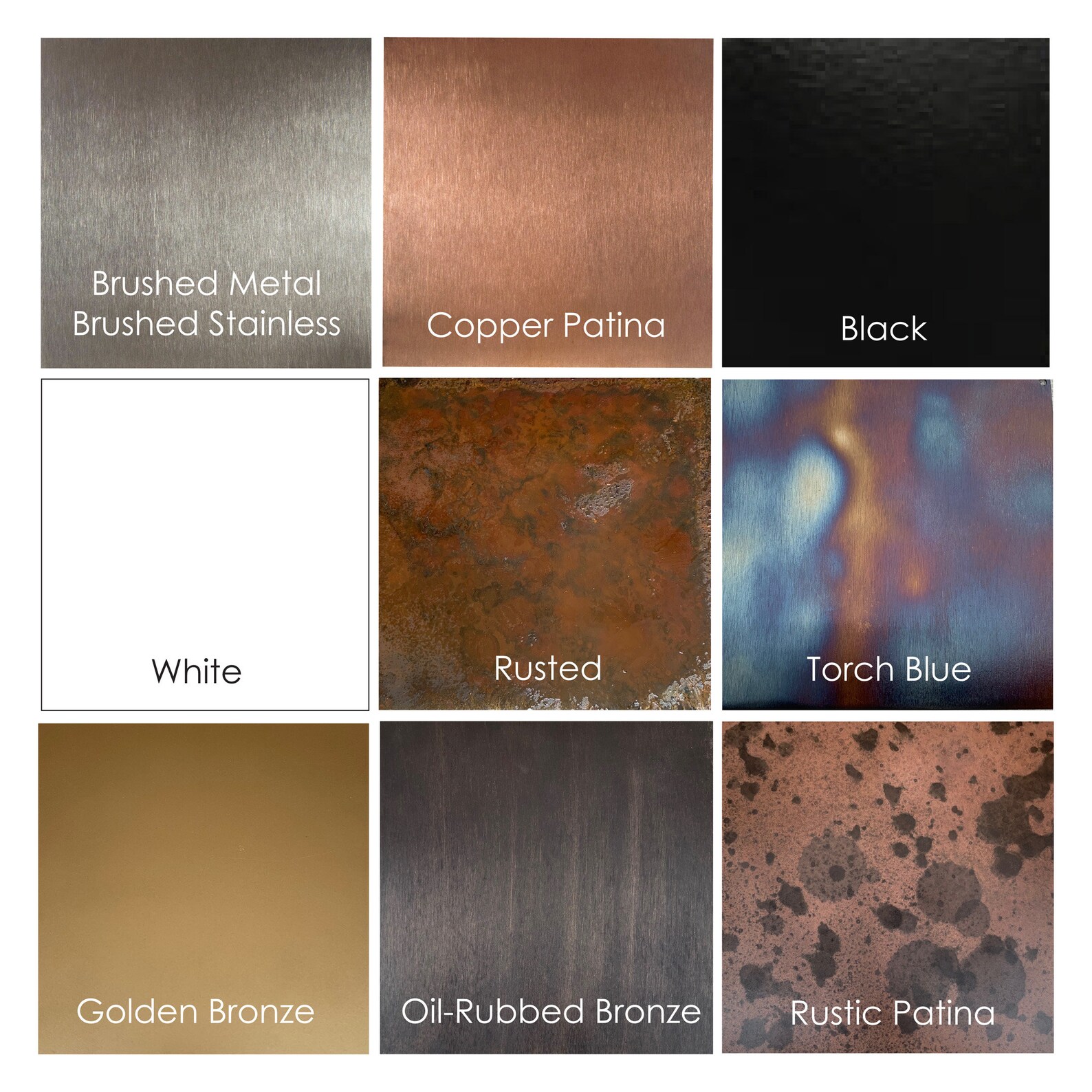 Pieces are coated with an automotive gloss or matte clear coat to prevent tarnishing. Stainless does not require clear coat