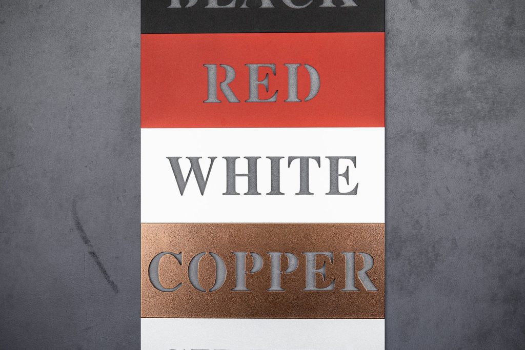 The metal name sign is powdered with 5 available color options: