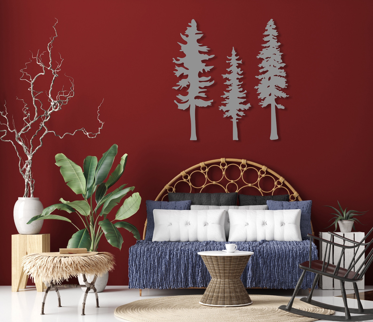 Metal Pine Tree Wall Art, Set Of 3 Trees Sign, Metal Tree Wall Decor, Unique Home Decor Gift, Nature and Forest Decor, Outdoor Wall Hanging