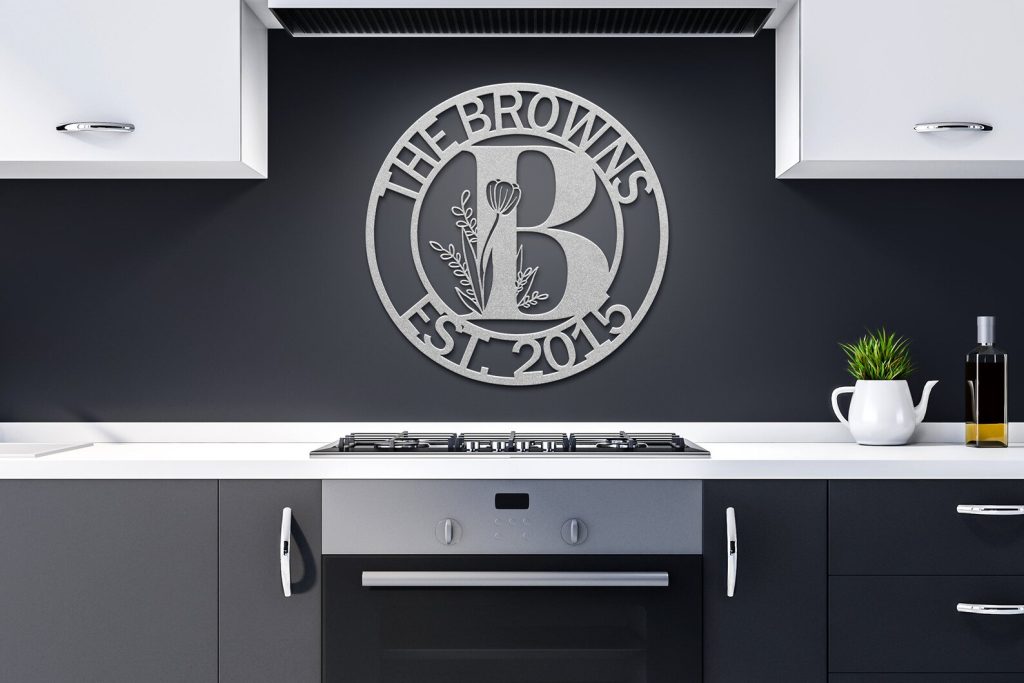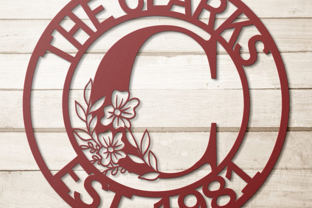 Custom Metal Sign that you can personalize to read anything on the top and bottom, makes it a perfect housewarming or wedding gift. The floral initial in the middle makes it a modern and beautiful wall art to hang on the door or on the gate.