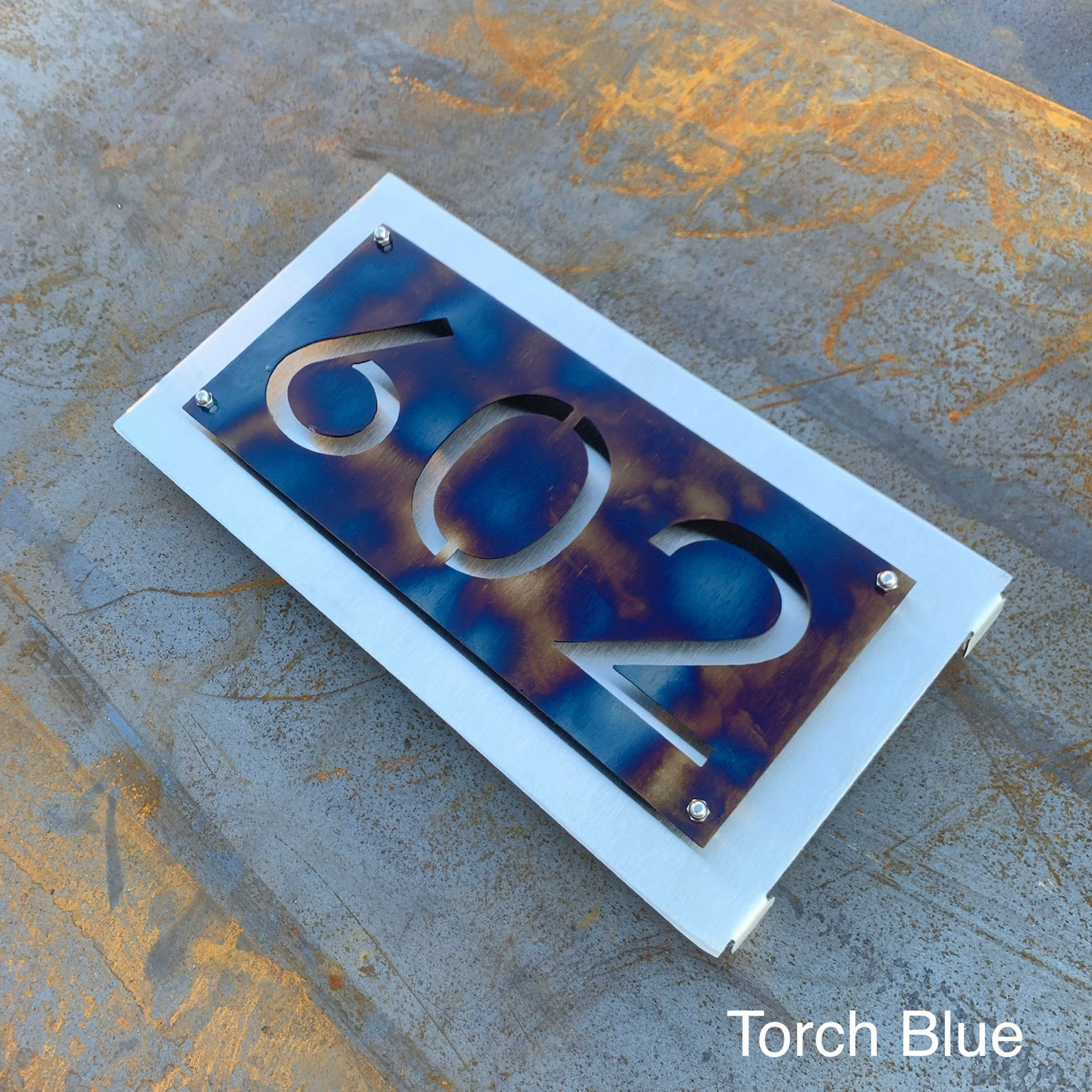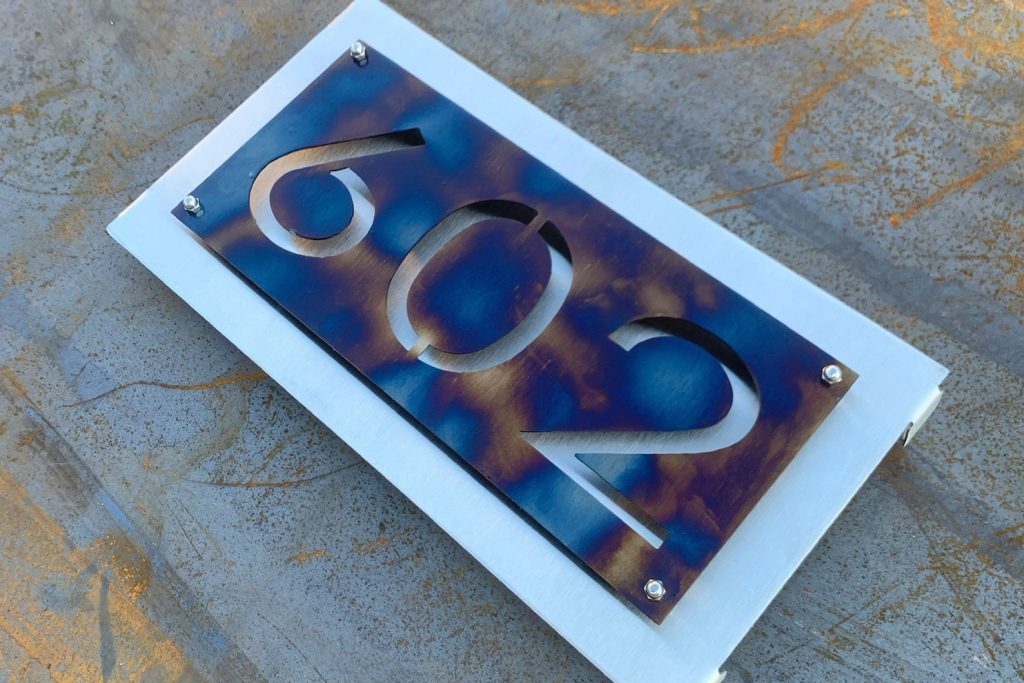 2) Choose a finish for your top piece. The top piece is what the numbers will be cut out of. All back-pieces will be stainless steel unless a special request is made.