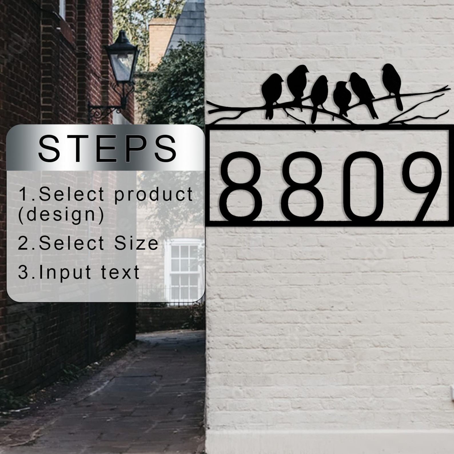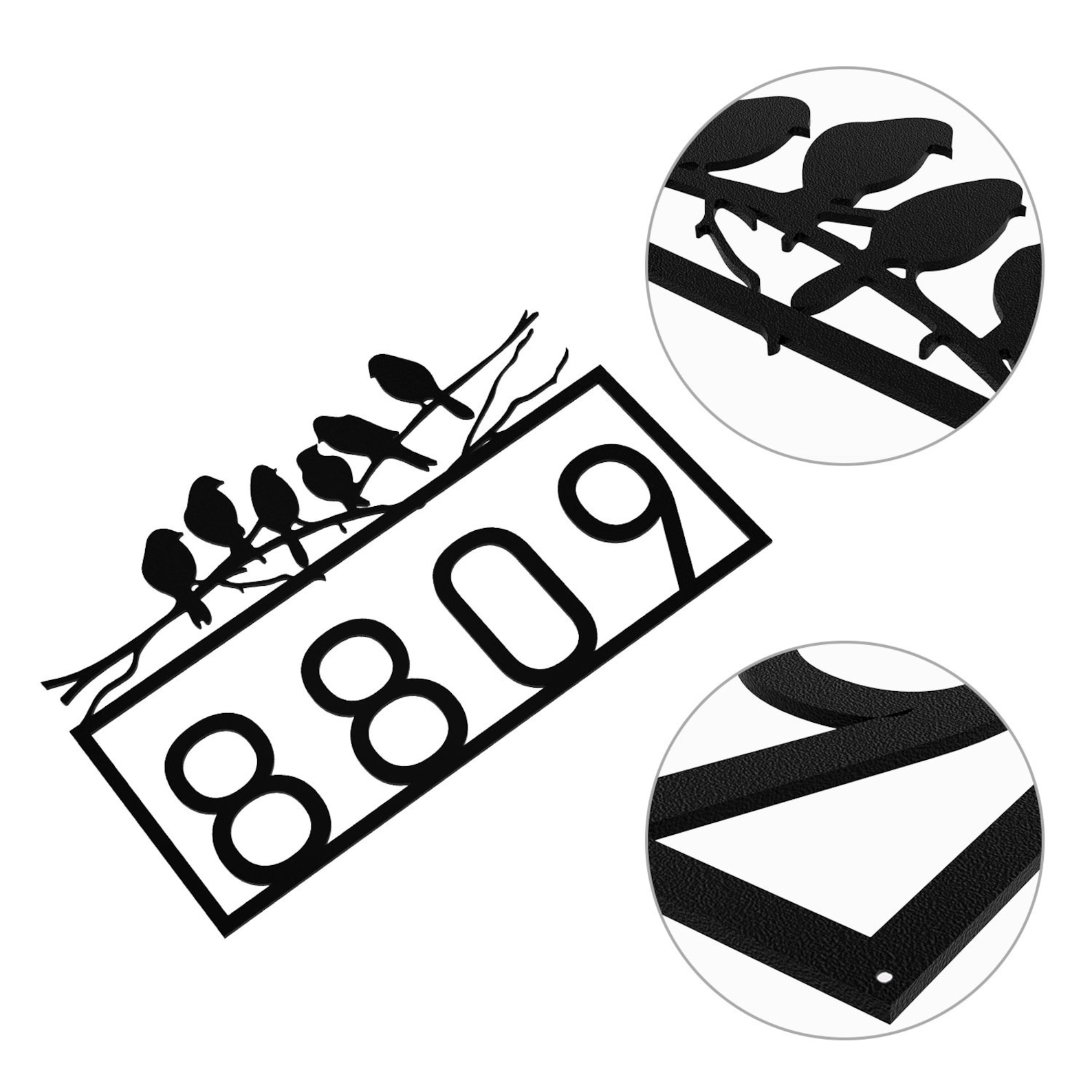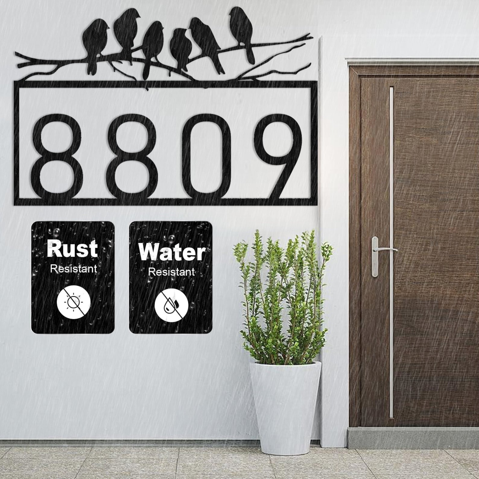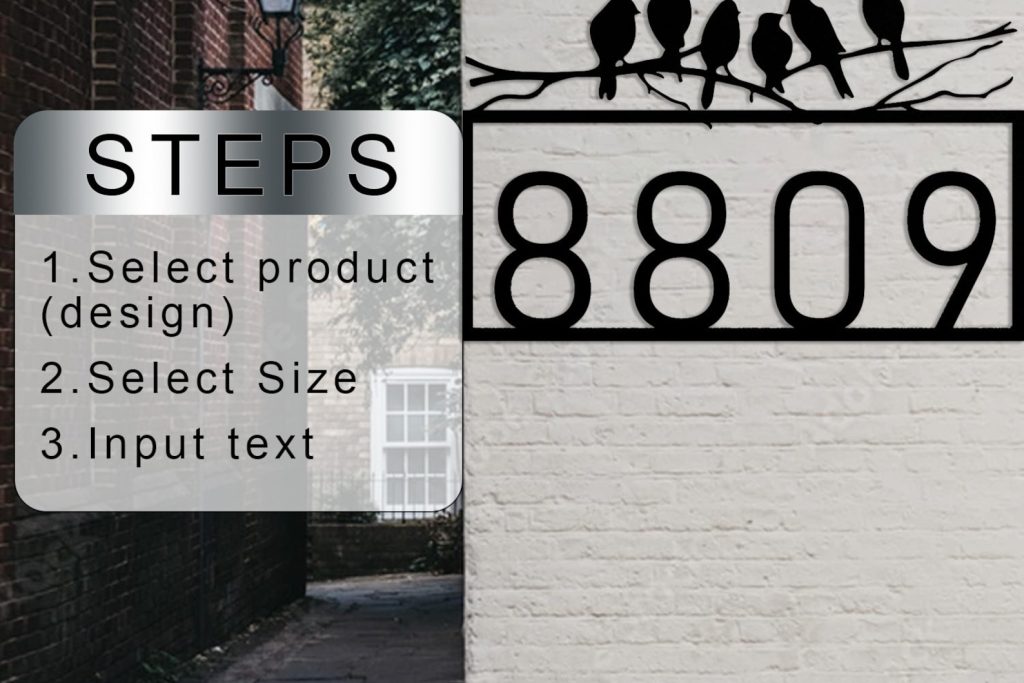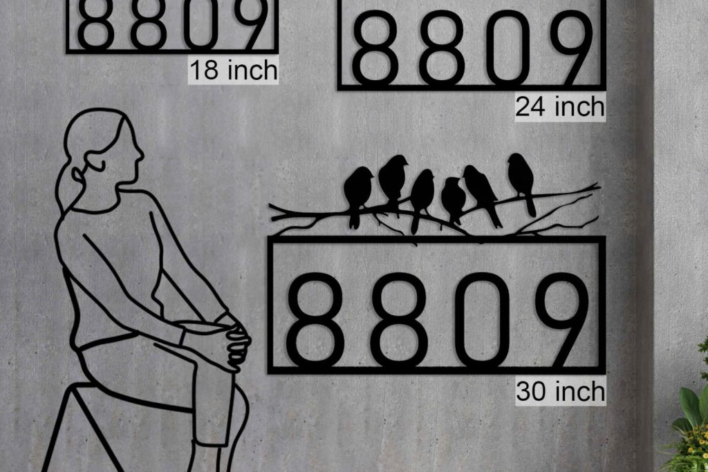 These personalized house numbers are made of high-quality stainless steel and have a satin black powder coat finish. They are waterproof, rustproof, and weather resistant, making them suitable for indoor and outdoor use. The numbers are easy to install and come with all necessary hardware and instructions. They are also UV resistant, so they will not fade or chip over time. These house numbers are perfect for adding a touch of elegance to your home9;s exterior. They are also a great way to increase your home9;s curb appeal and make it easier for visitors and delivery drivers to find your address. 12"-12"width x 3"height, 14"-14"width x 3 1/2"height, 16"-16"width x 4"height, 18"-18"width x 4 1/2"height, 20"-20"width x 5"height, 24"-24"width x 6"height, 30"-30"width x 7 1/2"height, 36"-36"width x 9"height