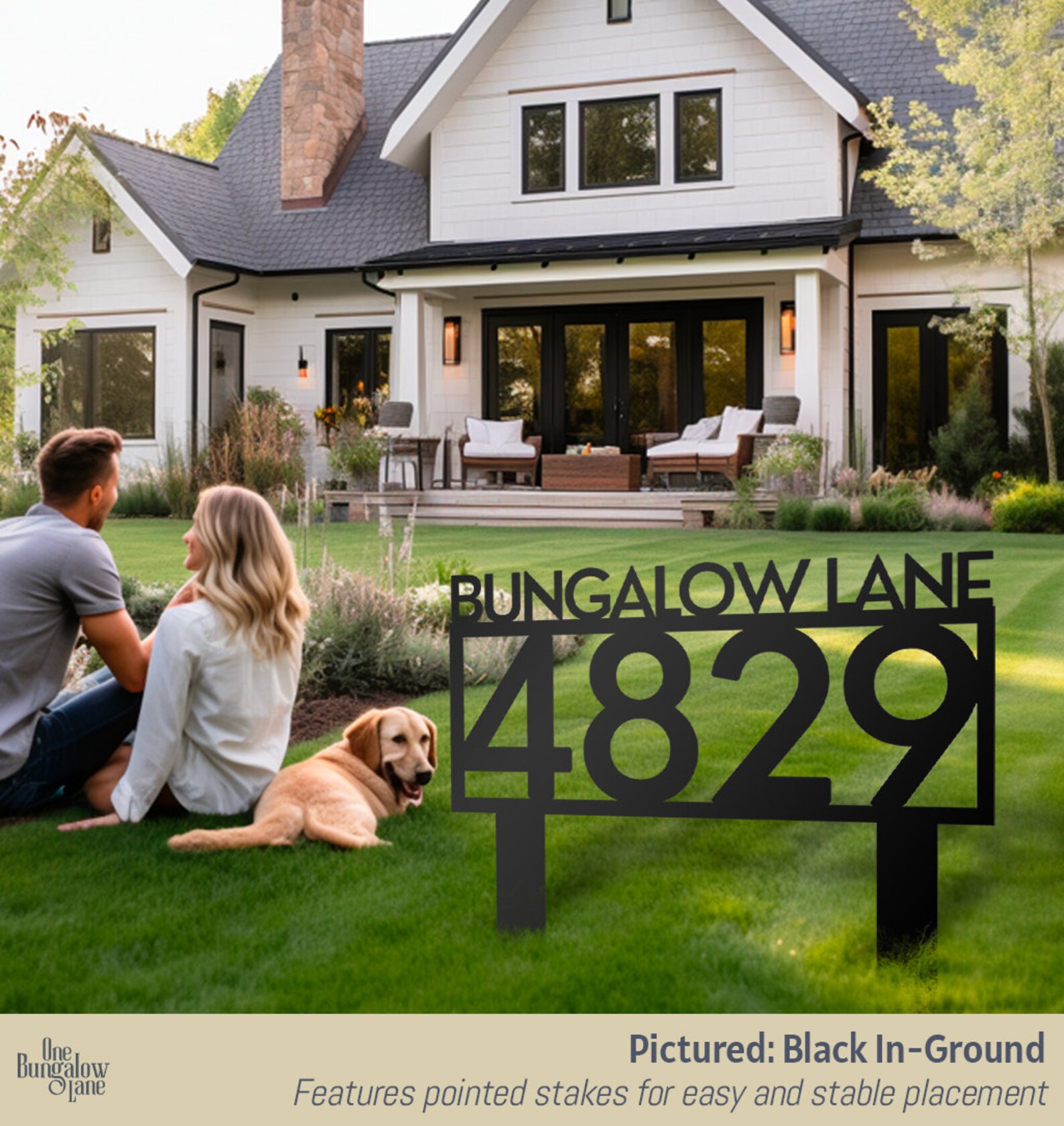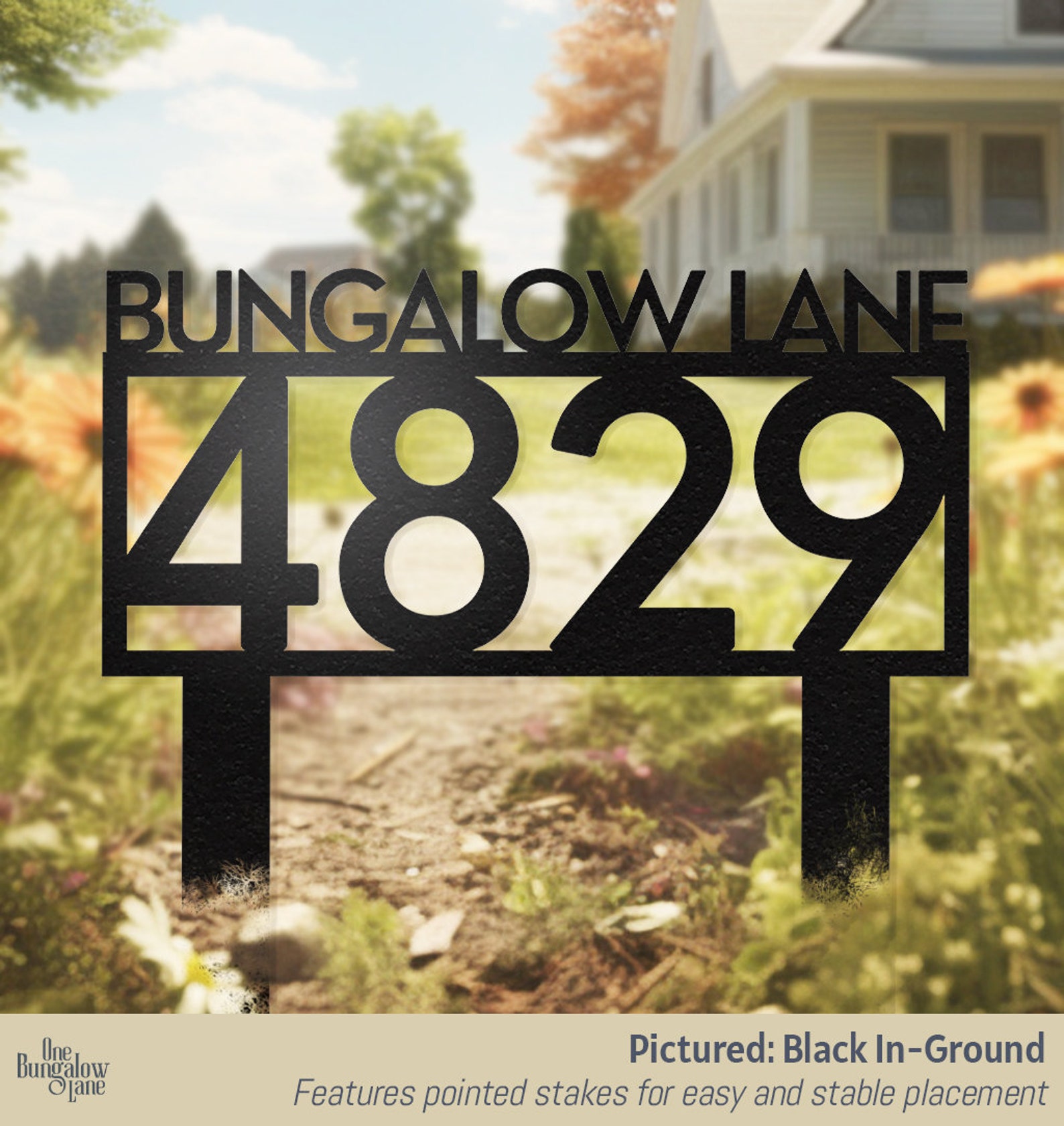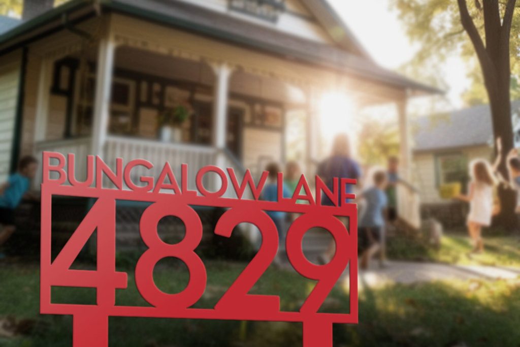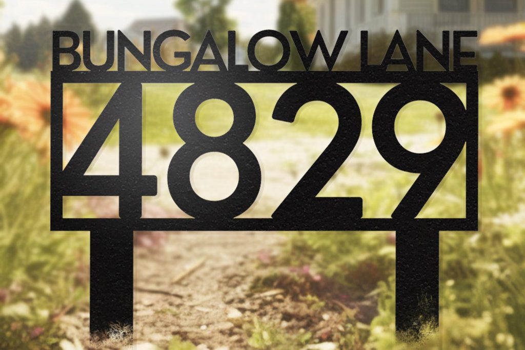 Elevate your outdoor space with our exquisite steel lawn address signs, seamlessly blending nature-inspired designs with functional elegance. At One Bungalow Lane, we take pride in our craftsmanship and personalized charm. Whether displaying your address, family name, or a combination of both, our signs infuse a unique touch into your abode.