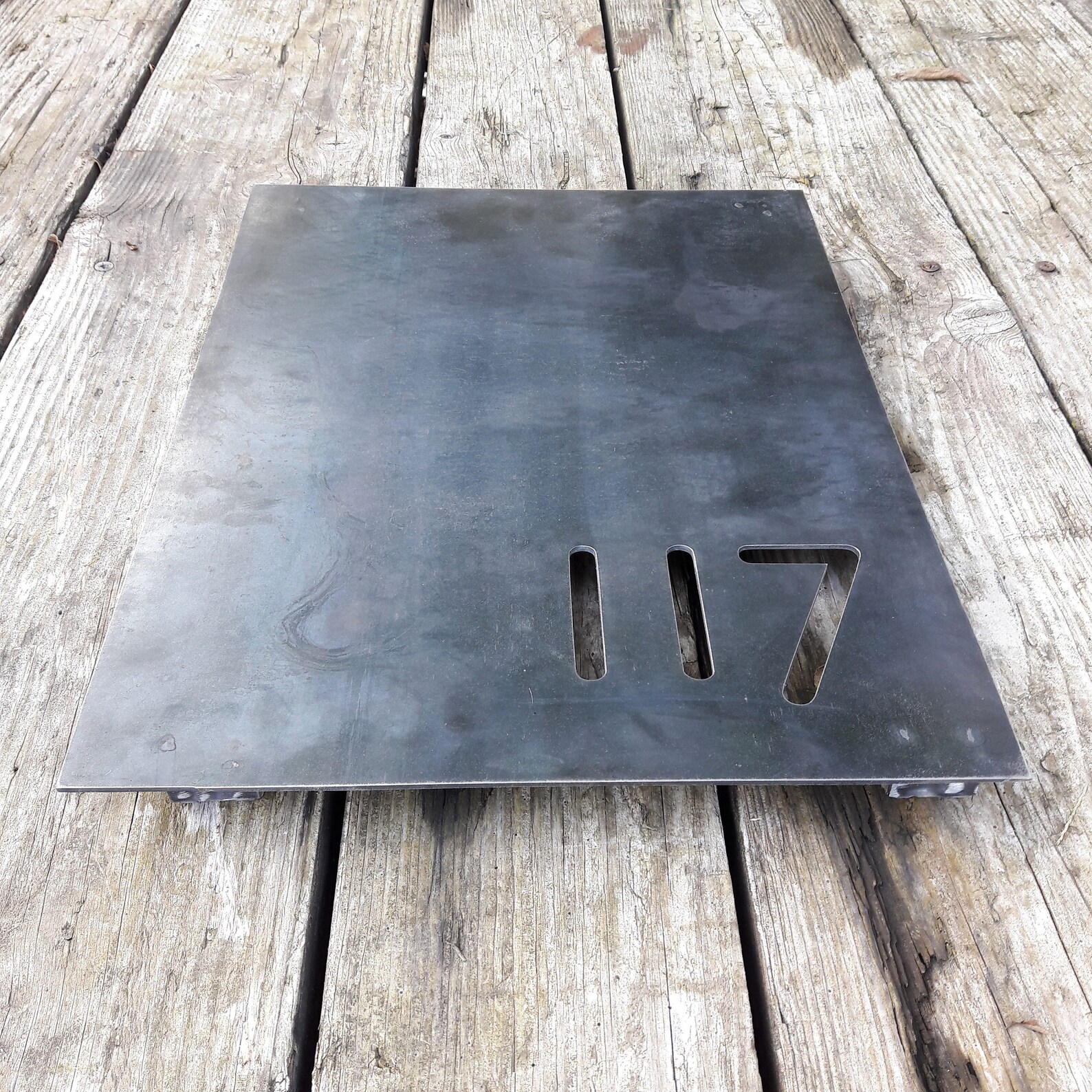 PLEASE NOTE: Raw Steel is a highly recyclable material that gets reused over and over again. This makes the finish vary from piece to piece. Your raw steel finish is created at our local mill and can be darker or lighter than our pictures depending on what material is being recycled that day. This makes your piece completely unique! Left untreated, RAW STEEL WILL RUST.