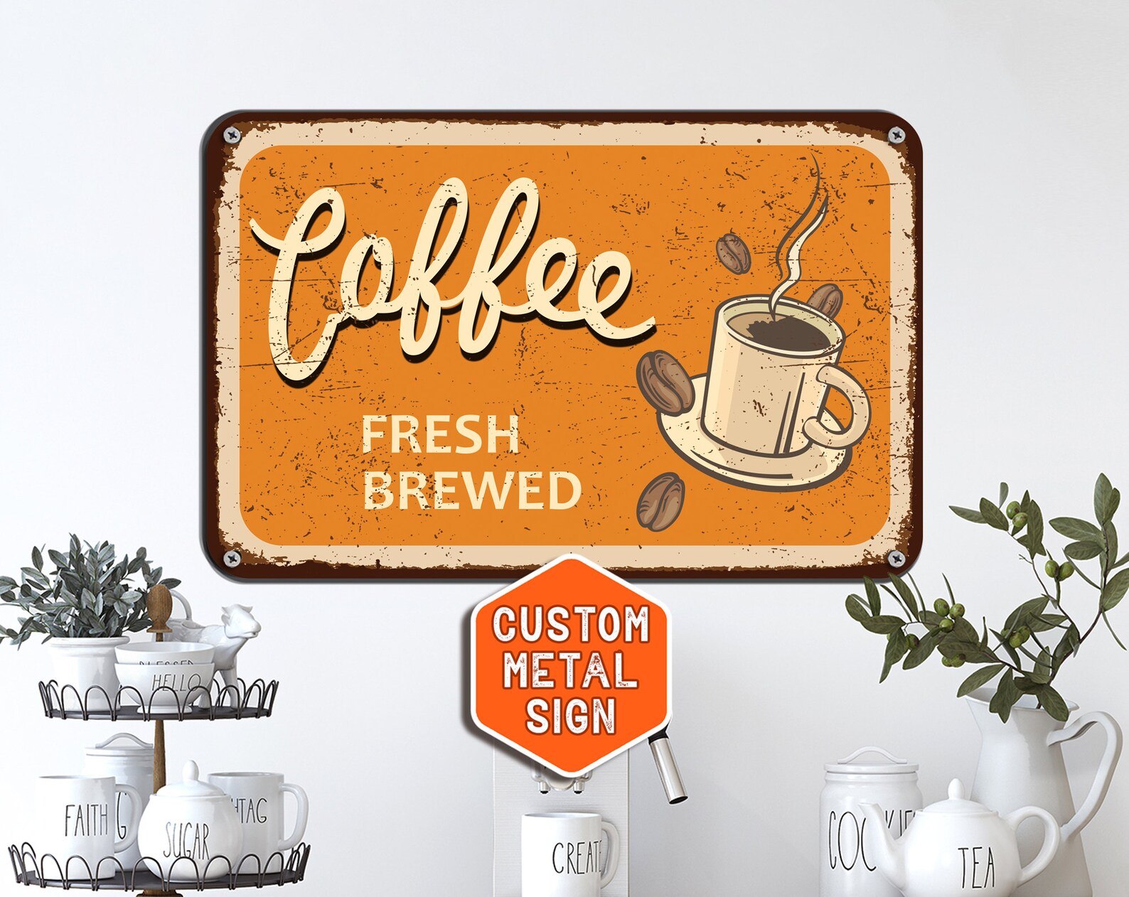 Kitchen Sign Metal Wall Decor Creates a Catch-Eye View of Your Family and Friends. Its Ideal as a Gift for Housewarming, or Other Special Occasions.