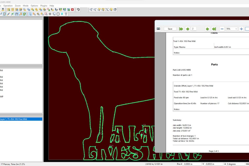 Our digital files are meticulously designed with a .051" kerf compensation, tailored for the fine cut tolerances of the Hypertherm plasma cutter, ensuring clean, precise cuts and enhancing the beauty and detail of your projects. Kerf refers to the material removed during the cutting process. By precisely accounting for this in our designs, we guarantee that details are preserved, and assemblies fit seamlessly, particularly on thinner metals and at larger sizes. The larger the design, the more effectively it compensates for kerf, making your projects come together perfectly.
