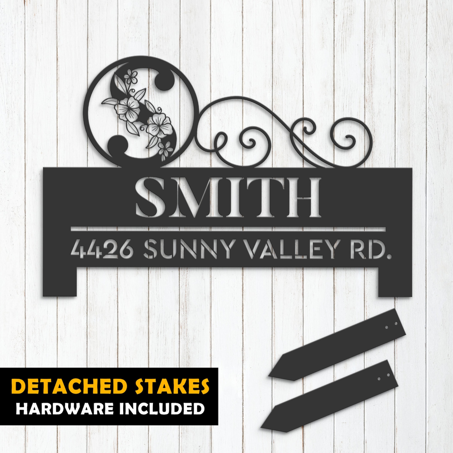 Introducing our custom metal address sign, available in 5 size options and 4 different styles to suit your individual needs. With our address sign, you can make a statement while also ensuring that visitors can easily locate your home or business.
