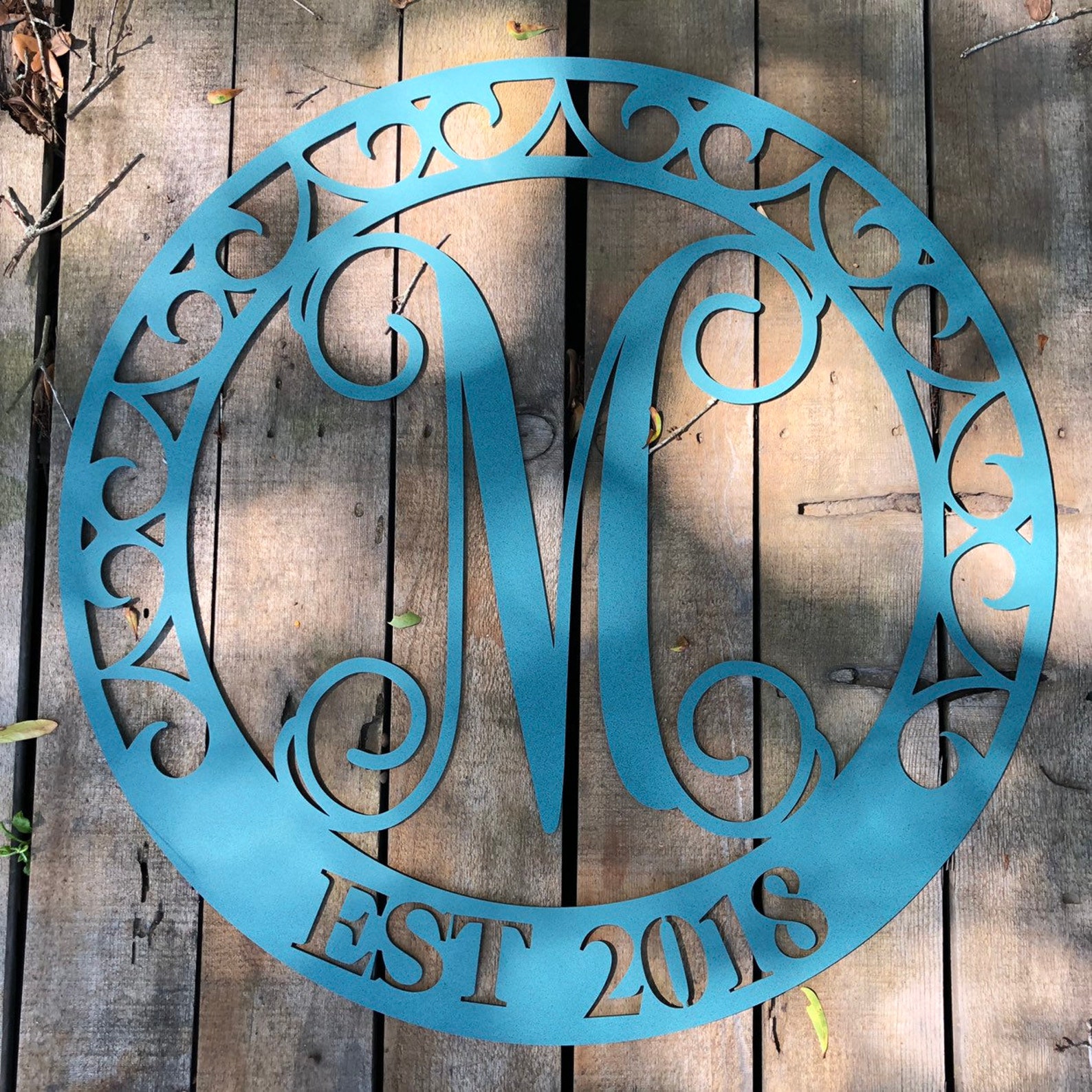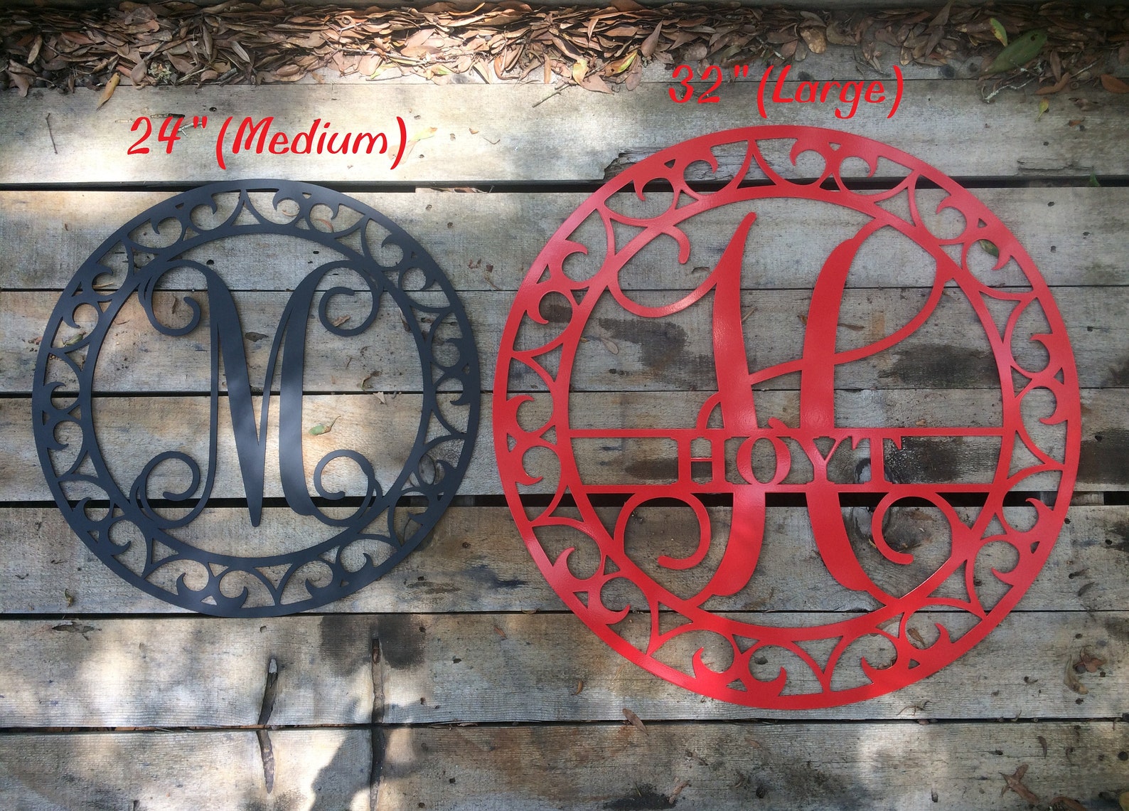 This listing is for ONE 32" diameter Metal Single Letter Monogram with Scroll Border Wall/Door Hanger. This is laser cut and made to order. A perfect addition to any indoor/outdoor home decor!