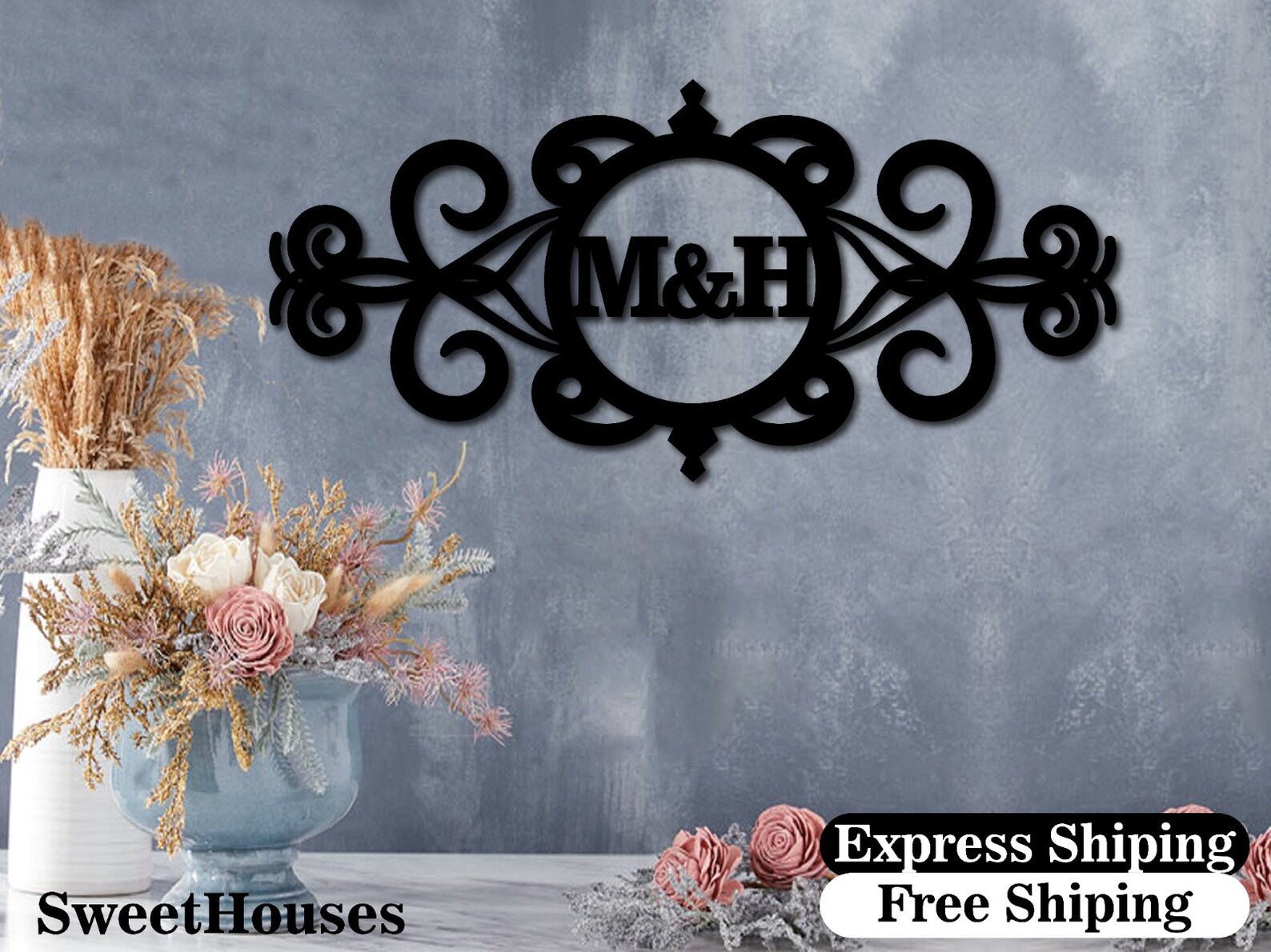 Be the first to review “Monogram Metal Wall Sign, Custom Wedding Decor”