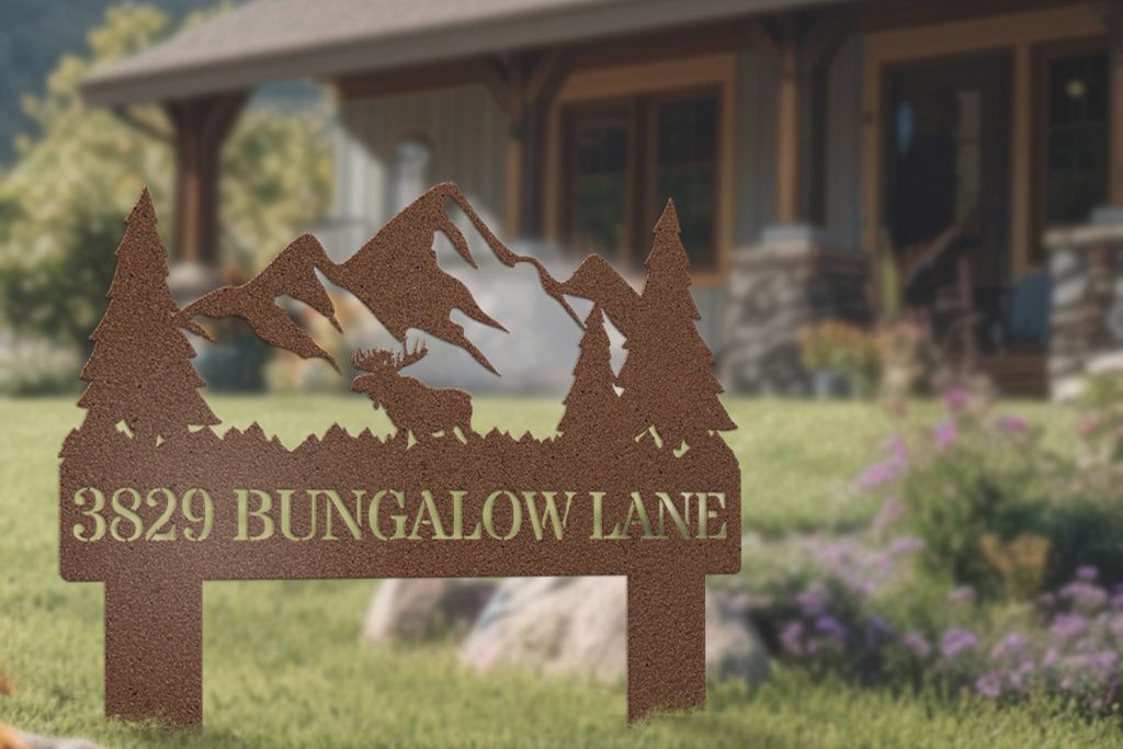 Elevate your outdoor space with our exquisite steel lawn address signs, seamlessly blending nature-inspired designs with functional elegance. At One Bungalow Lane, we take pride in our craftsmanship and personalized charm. Whether displaying your address, family name, or a combination of both, our signs infuse a unique touch into your abode.