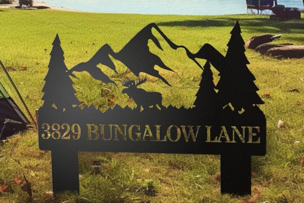 Metal Address SigntStreet Number SignstGround With StakestCustom House NumbertSigns for Front LawntMountain Cabin DecortDeer Moose DecortVintage AirBNB DecortAddress Sign Elktlarge black whitetcopper red silvertfront door porchtFamily Name Rock