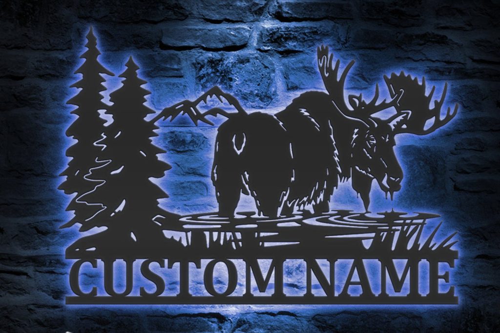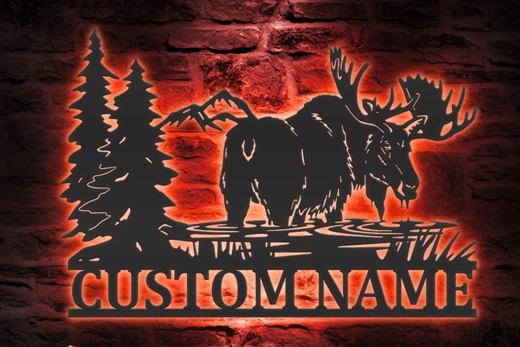 Moose Hunting LED Metal Art – Custom Hunter’s Cabin Decor