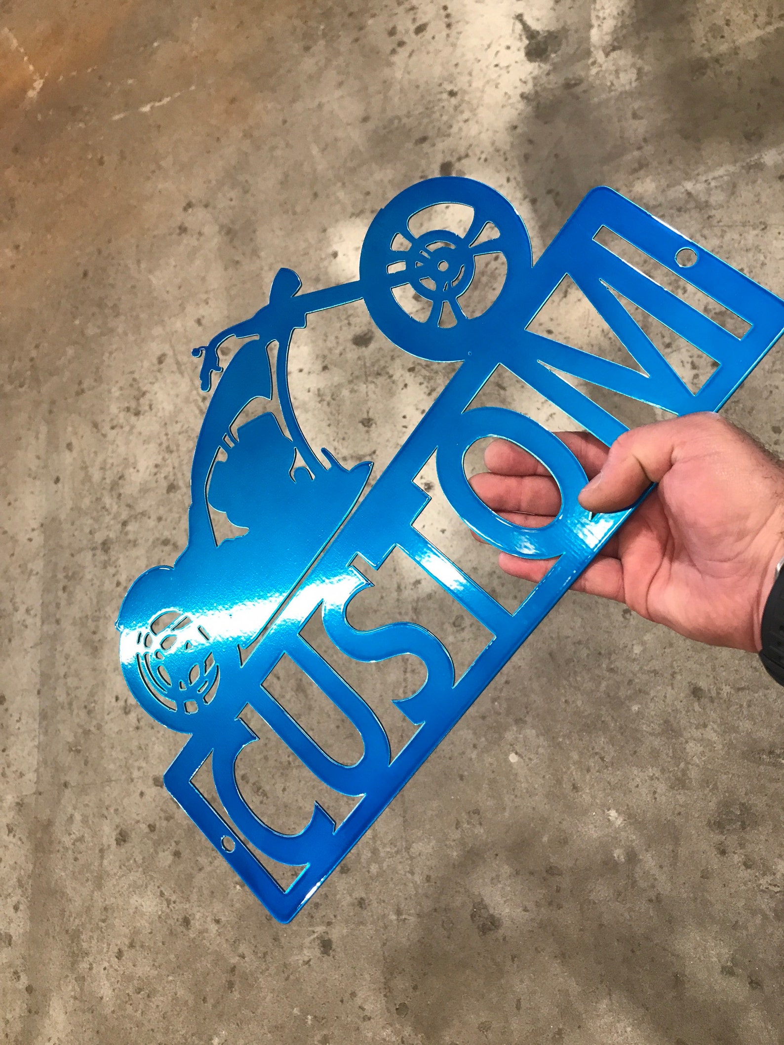 Candy colors and transparent colors are fully transparent. Any flaws that exist in the metal underneath the color will show through the color and be visible. This includes scratches, blemishes, cut marks, burns from the cutting process, etc.