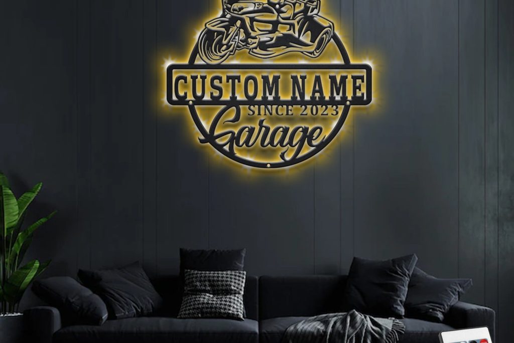 Motorcycle Garage Sign – LED Personal Metal Biker Decor