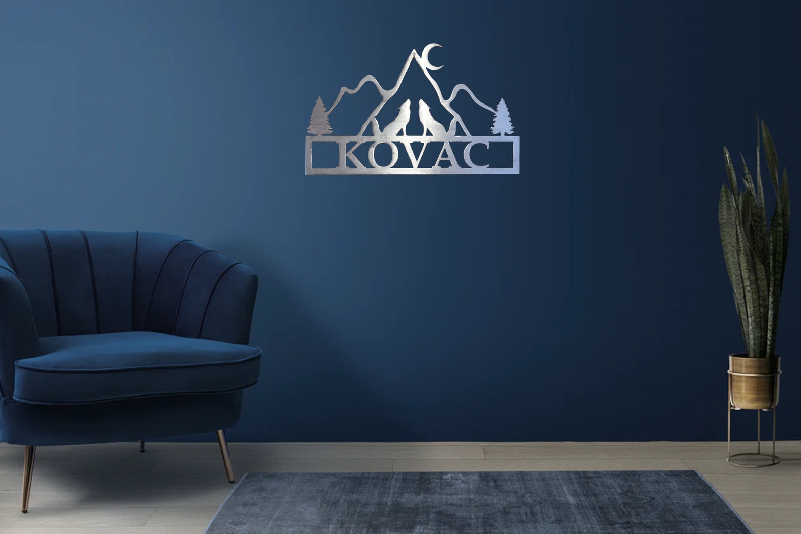 Be the first to review “Mountain Wolf Family Name Metal Sign, Cabin Decor”