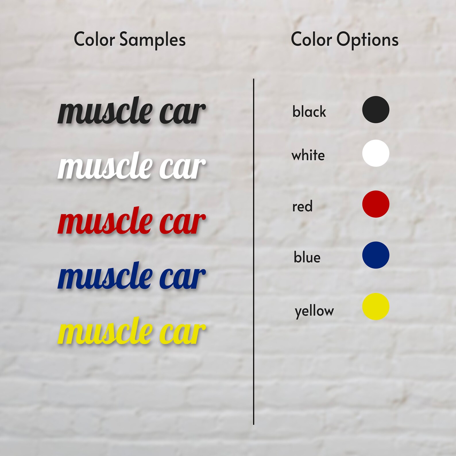 Introducing our Metal Muscle Car Sign, the perfect addition to your home decor! This contemporary piece is handmade using laser cut metal, and is available in four different sizes to suit your needs. Choose from five different color options, including black, white, red, blue, and yellow.