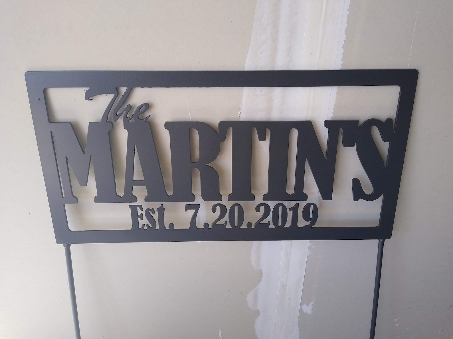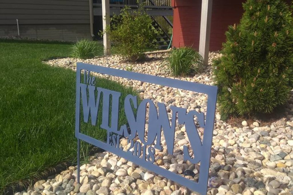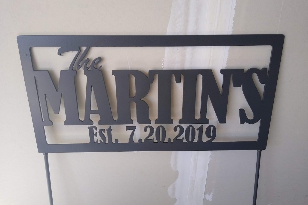 Personalize your front yard with this custom yard sign. This is cut from 10-guage steel and can be personalized with your name, last name, established date, house numbers – whatever you desire! Great gift idea!
