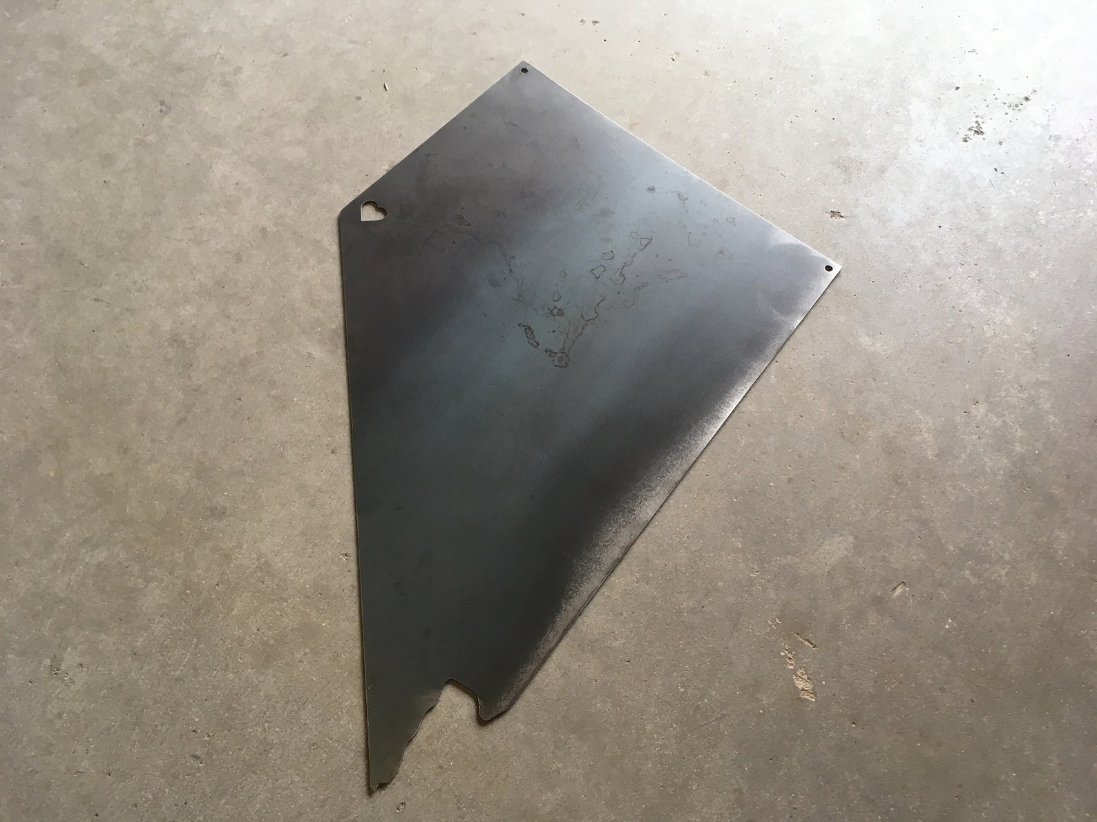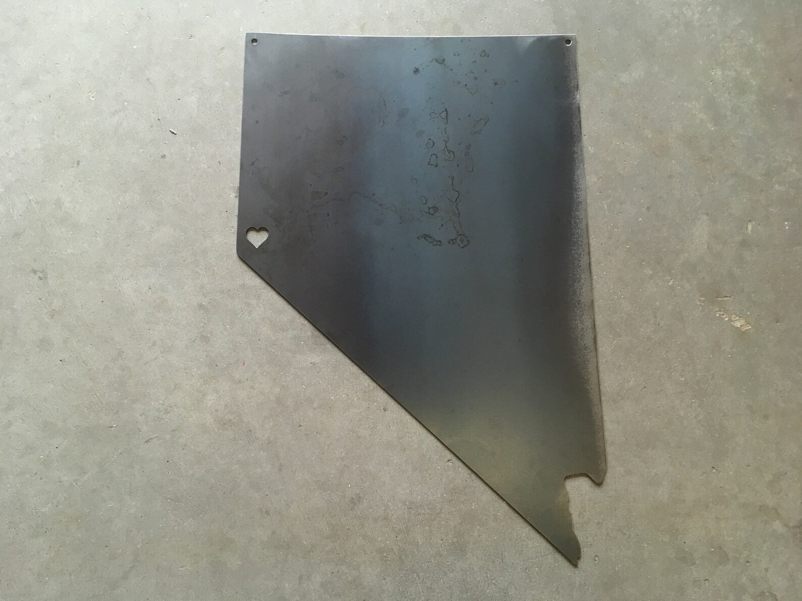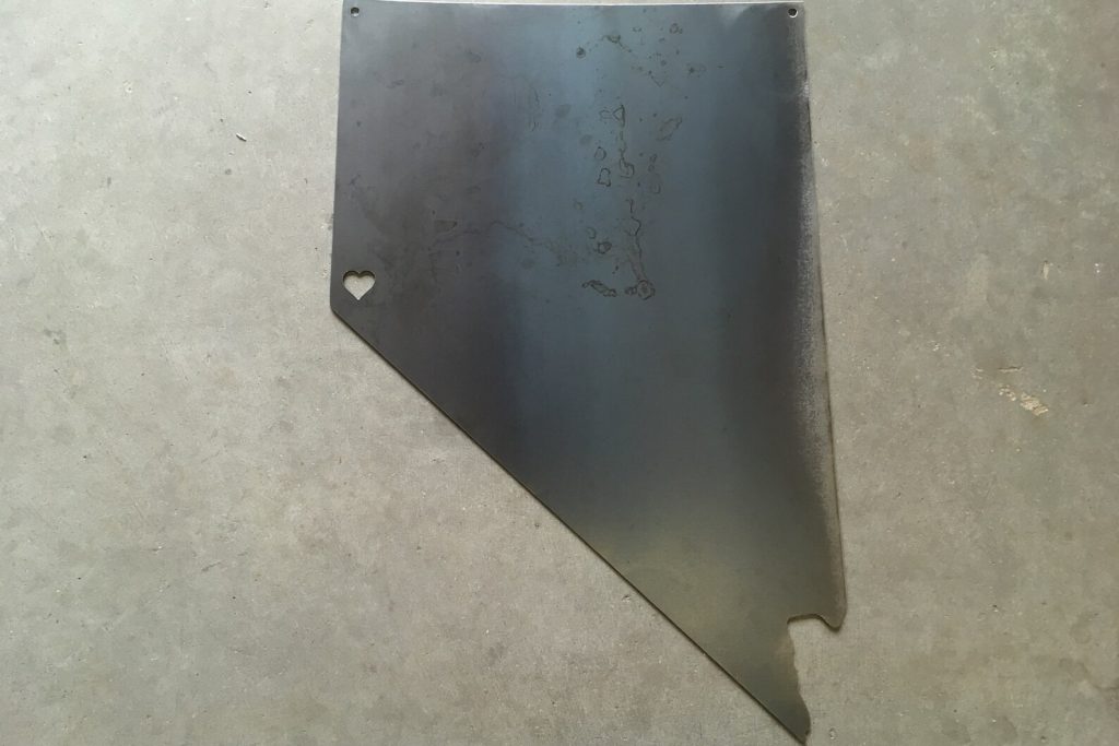 This metal state of Nevada sign with a custom placed heart (or star) will be the envy of all your friends. We use a plasma CNC table to create the outline of Nevada with a heart placed in your desired spot. This rustic metal sign can be clear coated to maintain a metal appearance or painted. This product is approximately 12" wide by 17" tall. Contact our shop to request a different state.