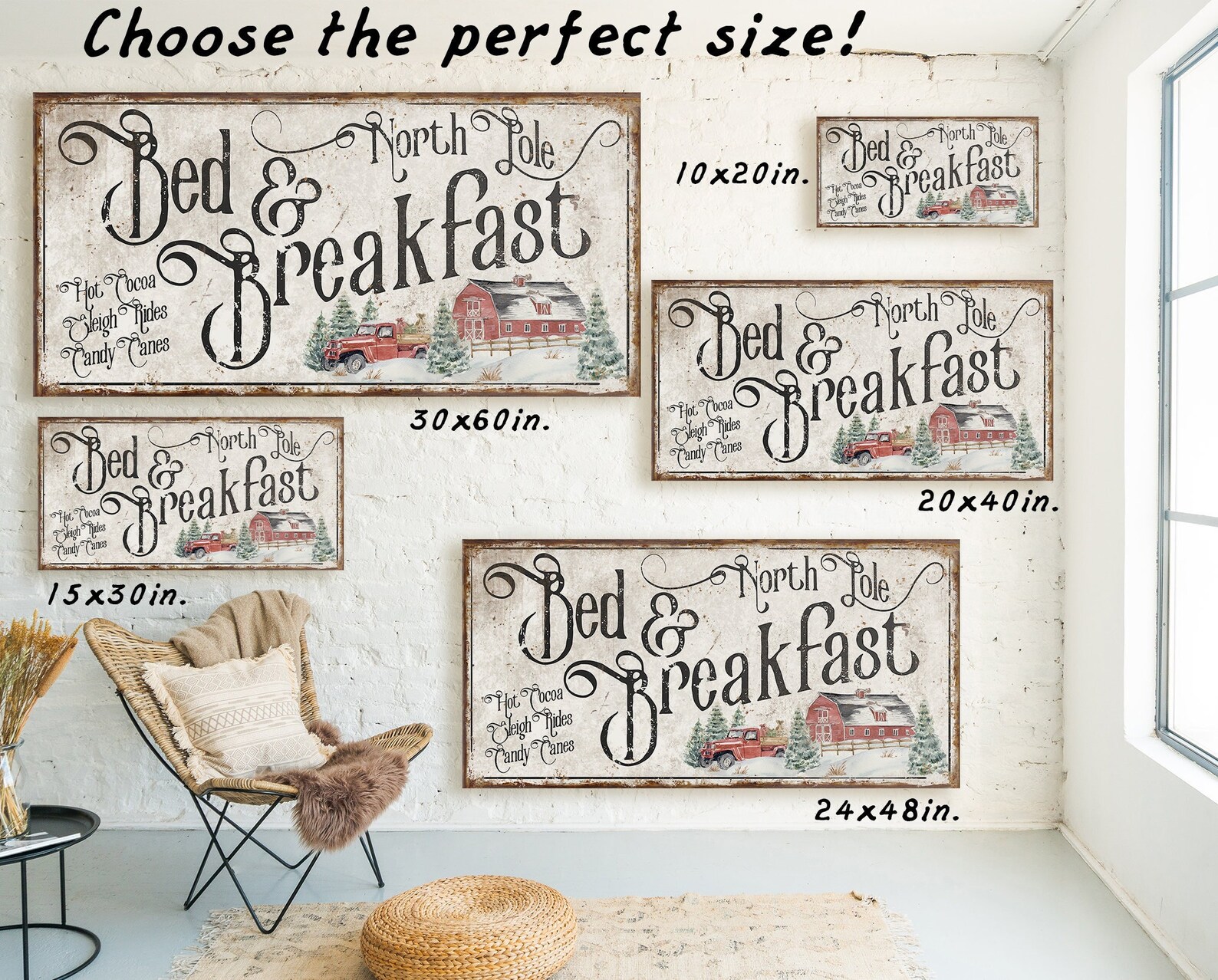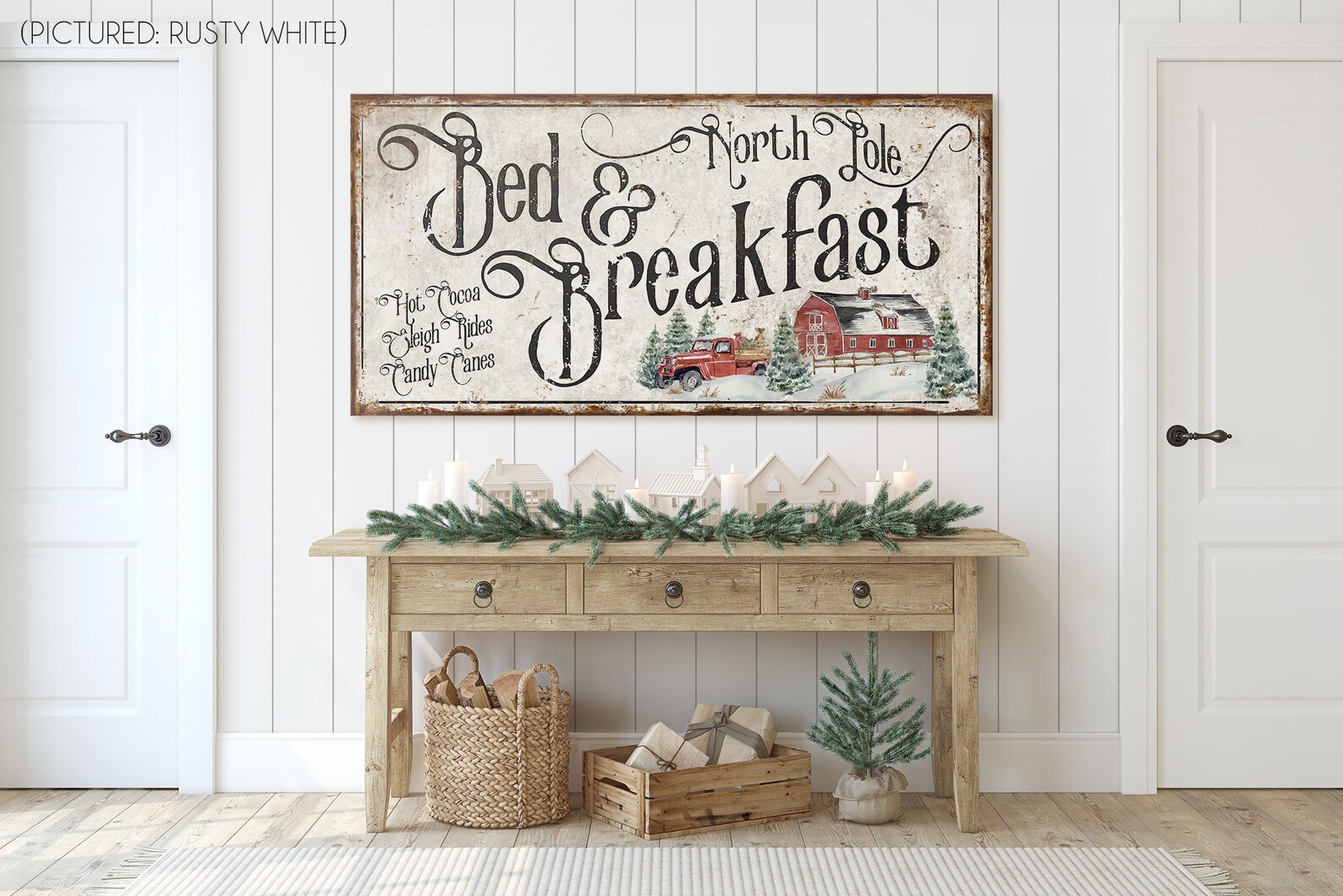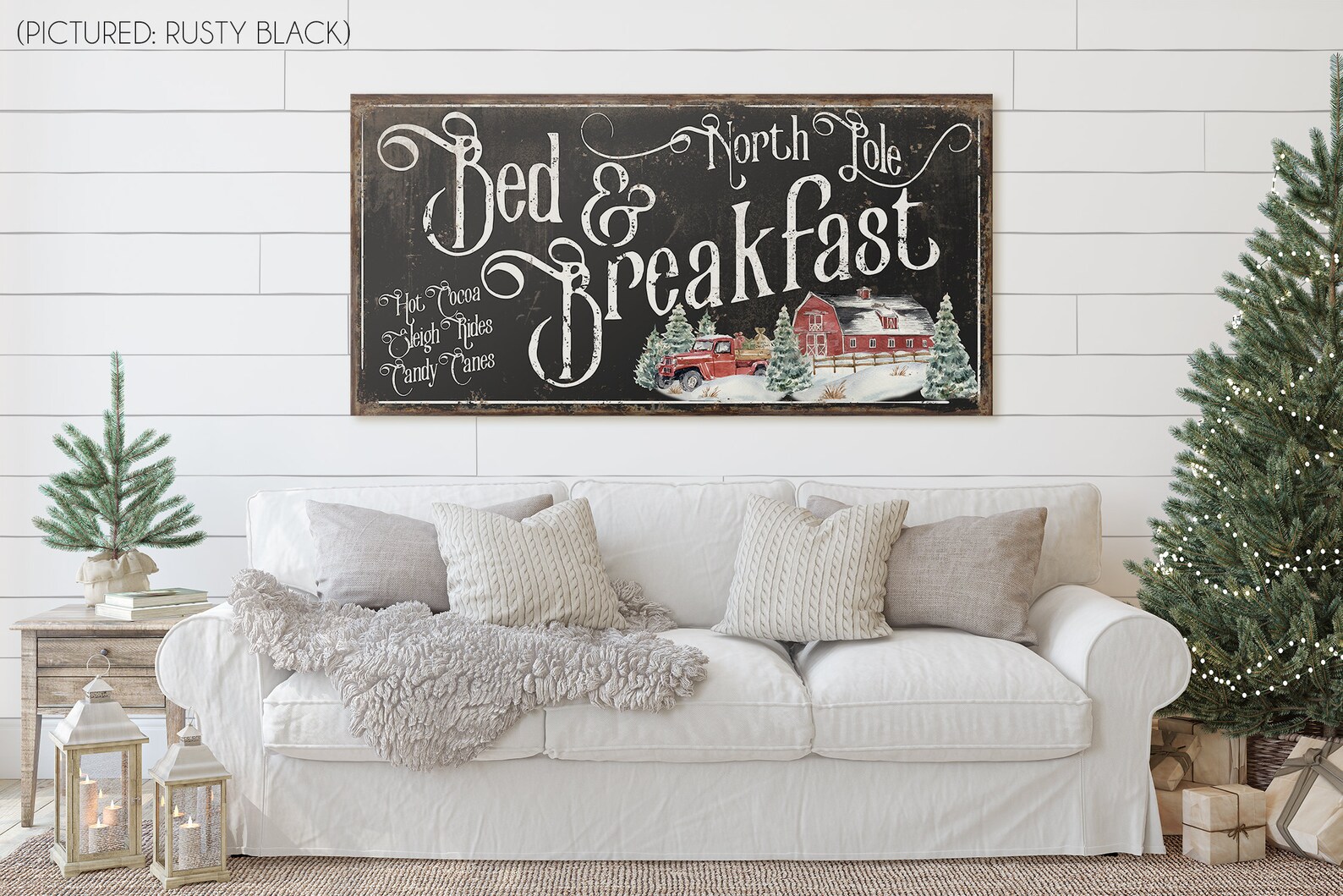 North Pole Bed andtBreakfast SigntVintage ChristmastDecor for FronttPorch Rustic HolidaytDecoration FarmhousetChristmas DecortRed Trucktwhite black largetbig huge oversizetfront porch signstmetal wood canvastframed wooden
