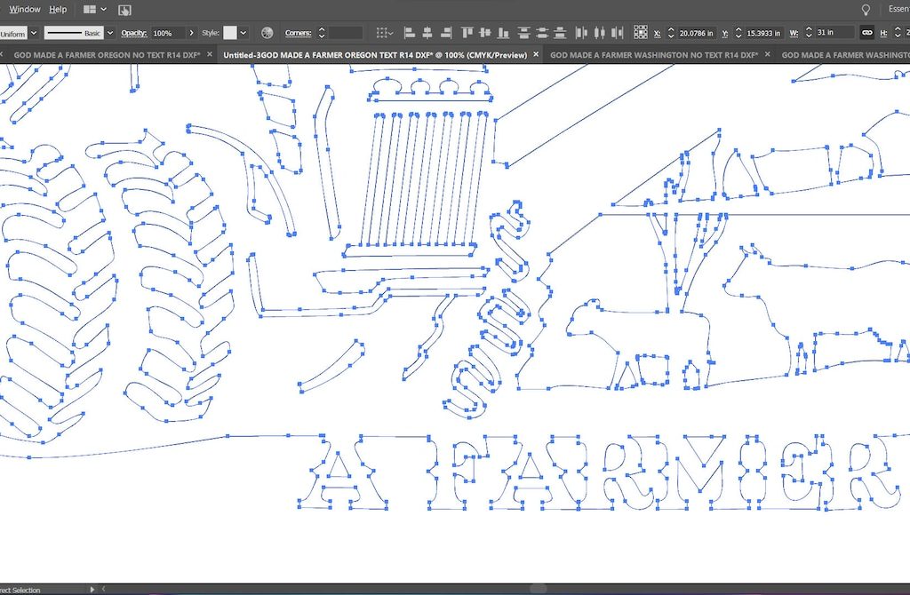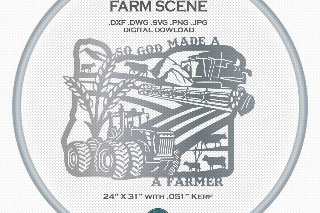 Introducing our so god made a farmer laser cutting files for cnc, a farm sign svg file for plasma cutting. This farm scene dxf files for metal, ontario svg, oregon sign dxf files for metal, tractor svg files for laser cutters file bundle includes svg jpg png dwg (r14 & 2018) and dxf files (r14 & 2018) for a full collection of file formats to suit your needs. These versatile cutting files are perfect for creating custom plasma cut ranch signs on your cnc machine and feature clean lines and minimal nodes; they have been sheetcam tested for tolerances.