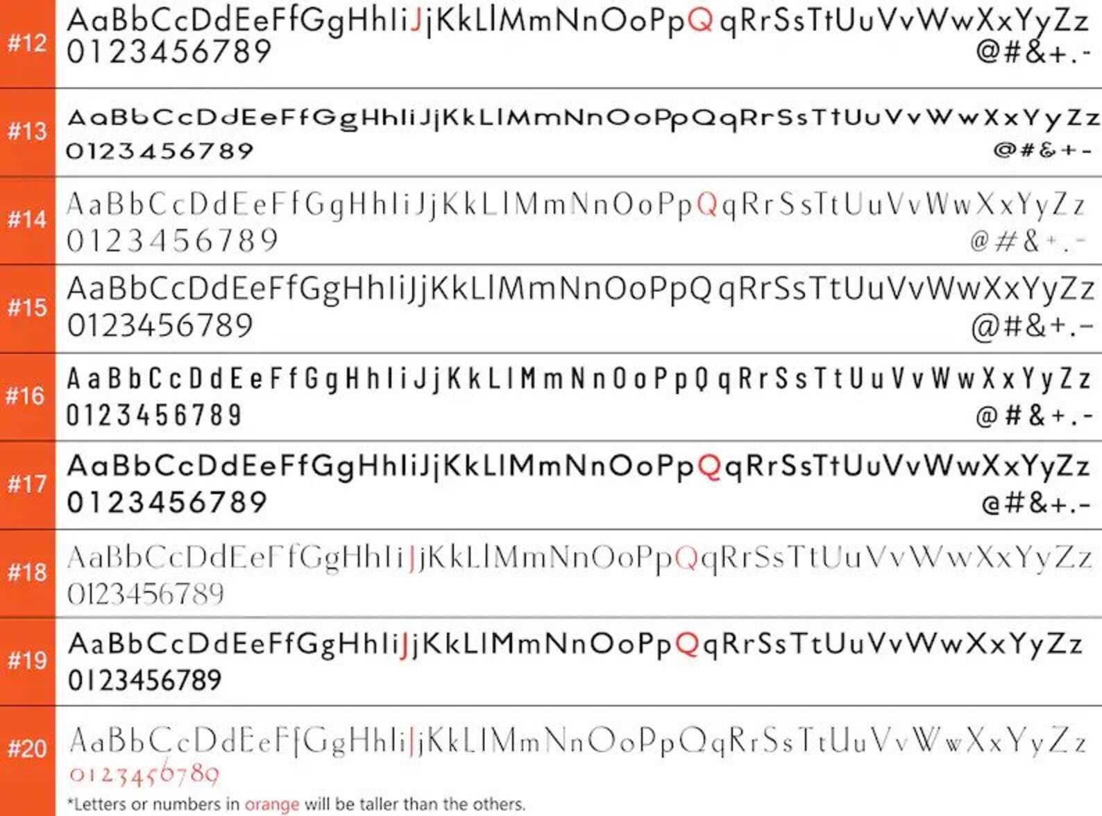 For orders with upper and lowercase letters, or all lowercase letters, the font size will be for the tallest letters in the text. All other letters will be the standard proportional size. We can also use symbols like . & $ @ , custom logos, or whatever else you might need.