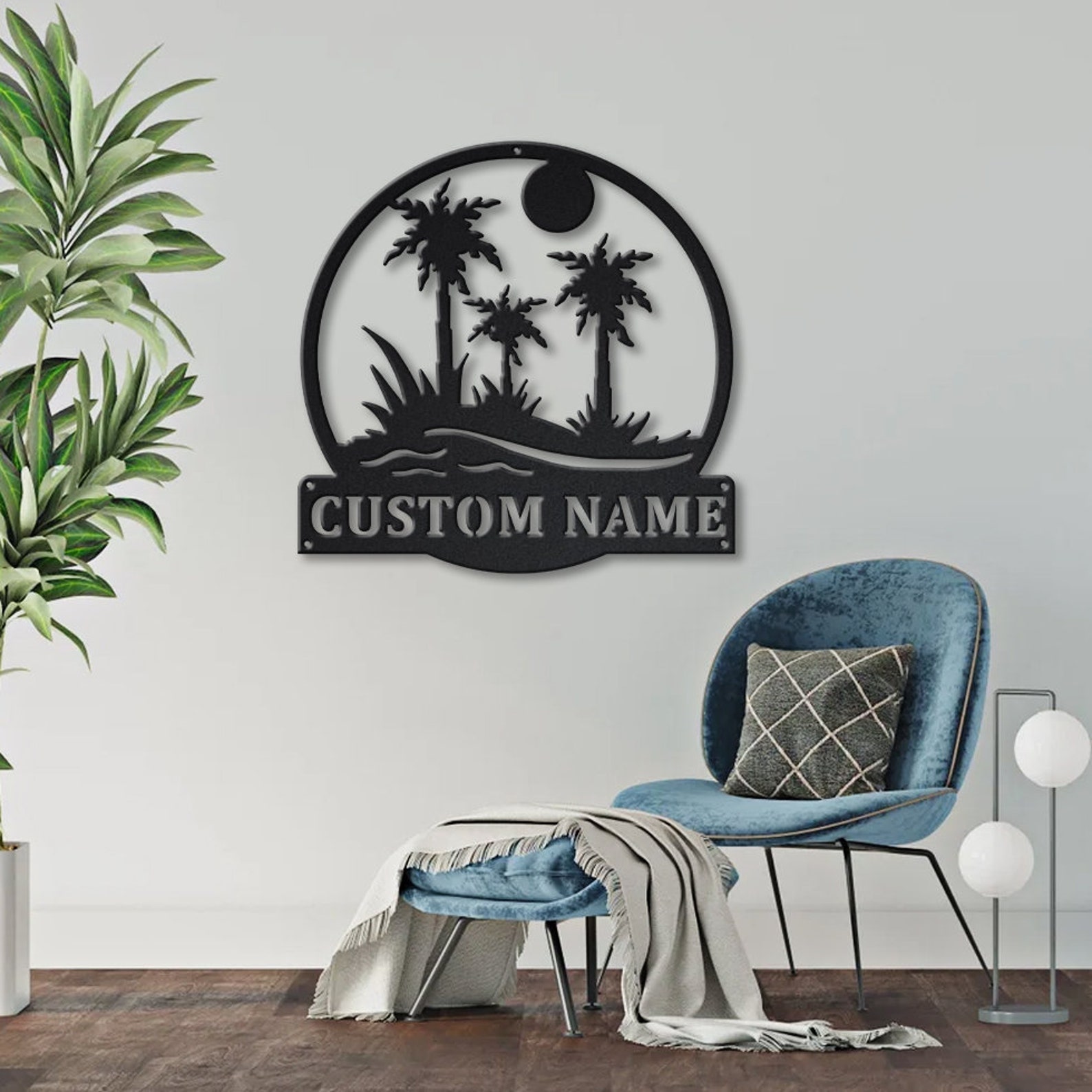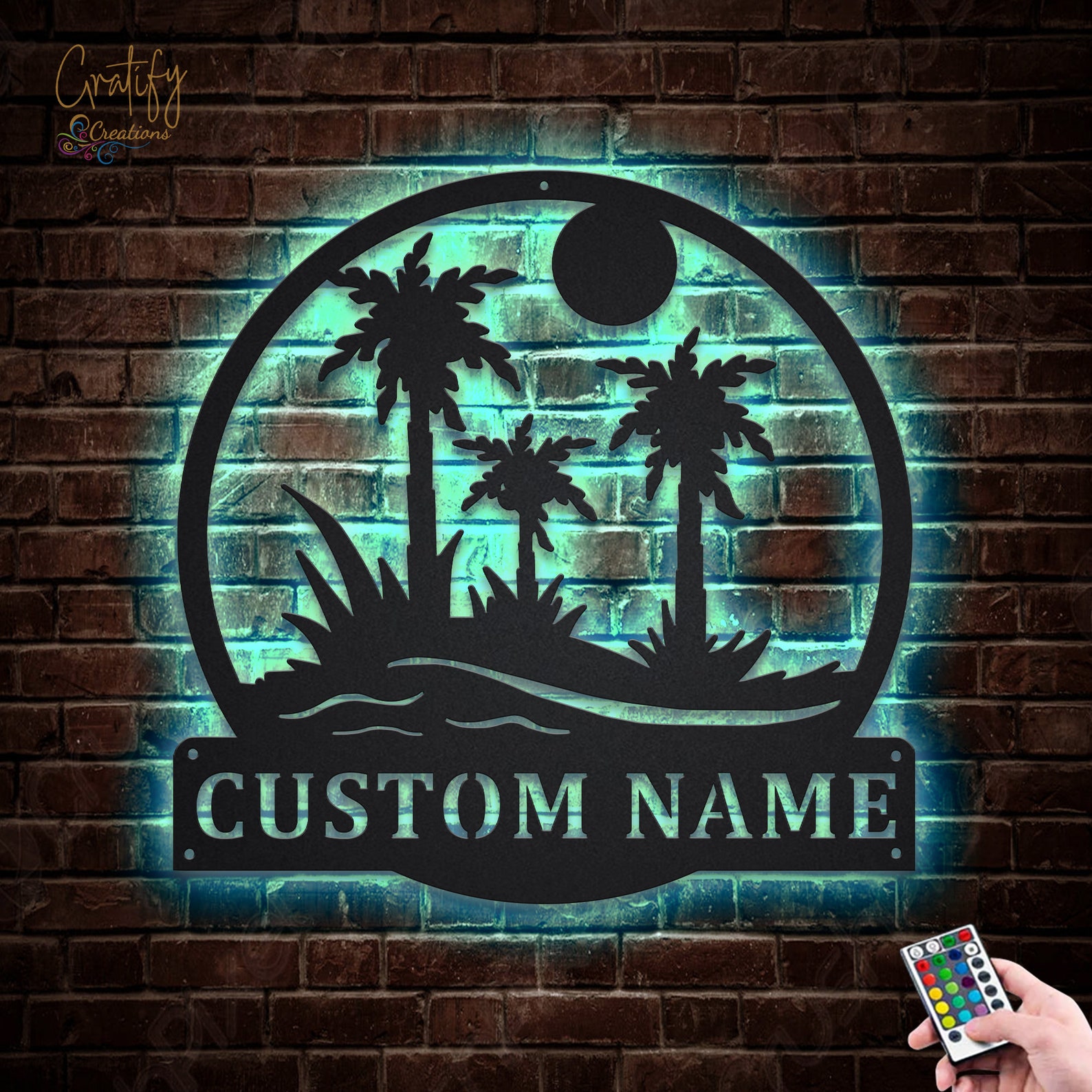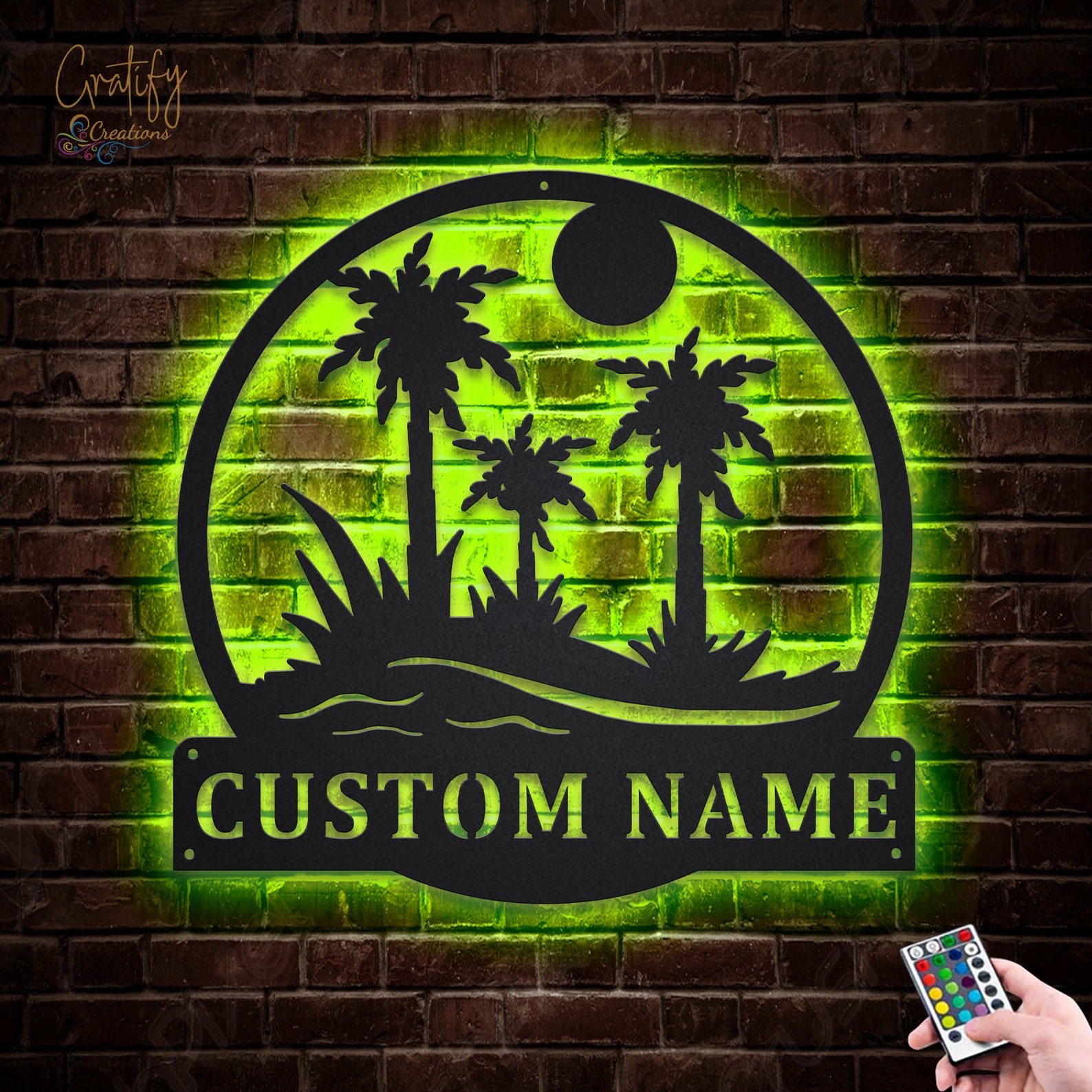 Palm Tree Summer Metal Sign with LED V3 – Neon Decor