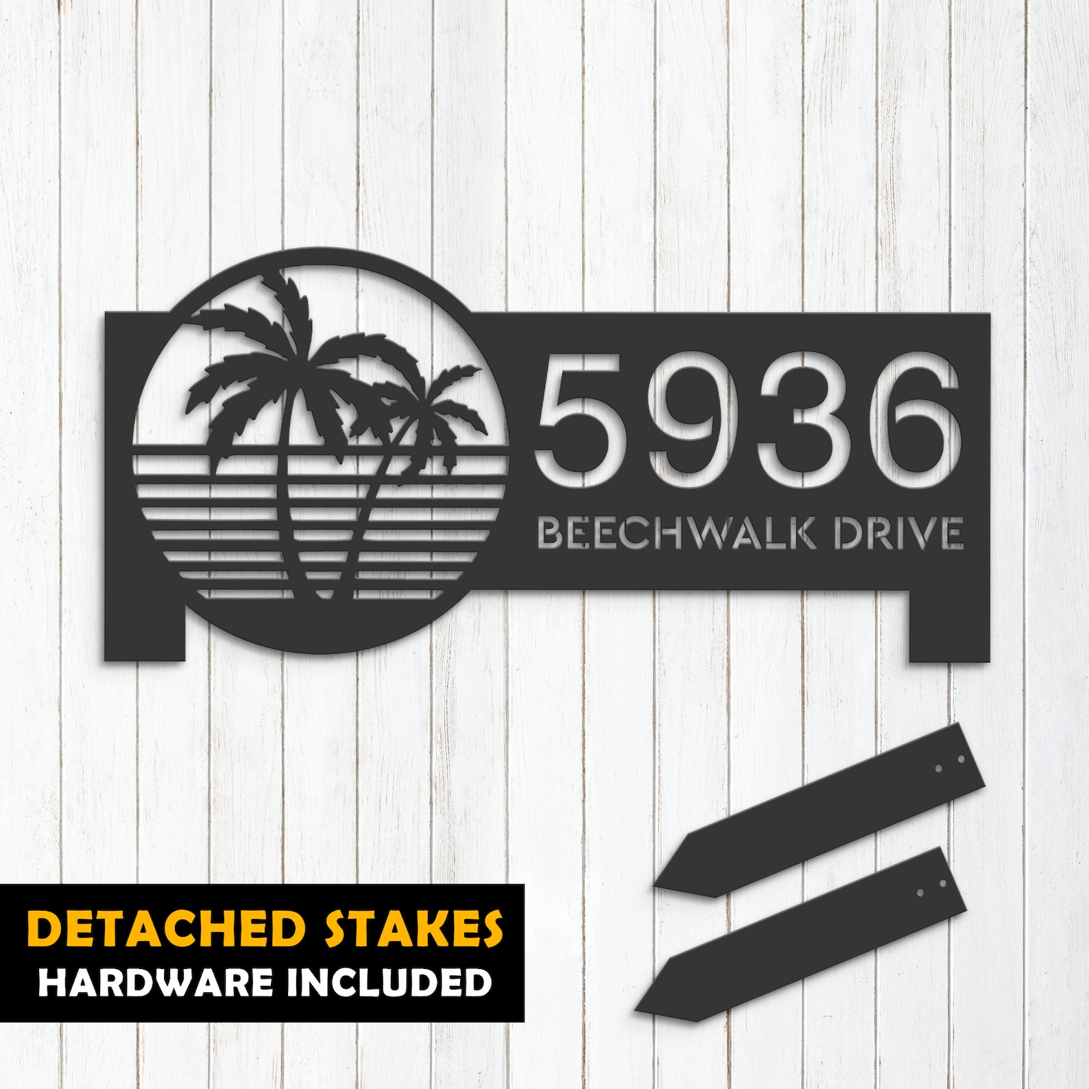 Be the first to review “Palm Tree Sunset Address Sign – Personal Metal Decor”