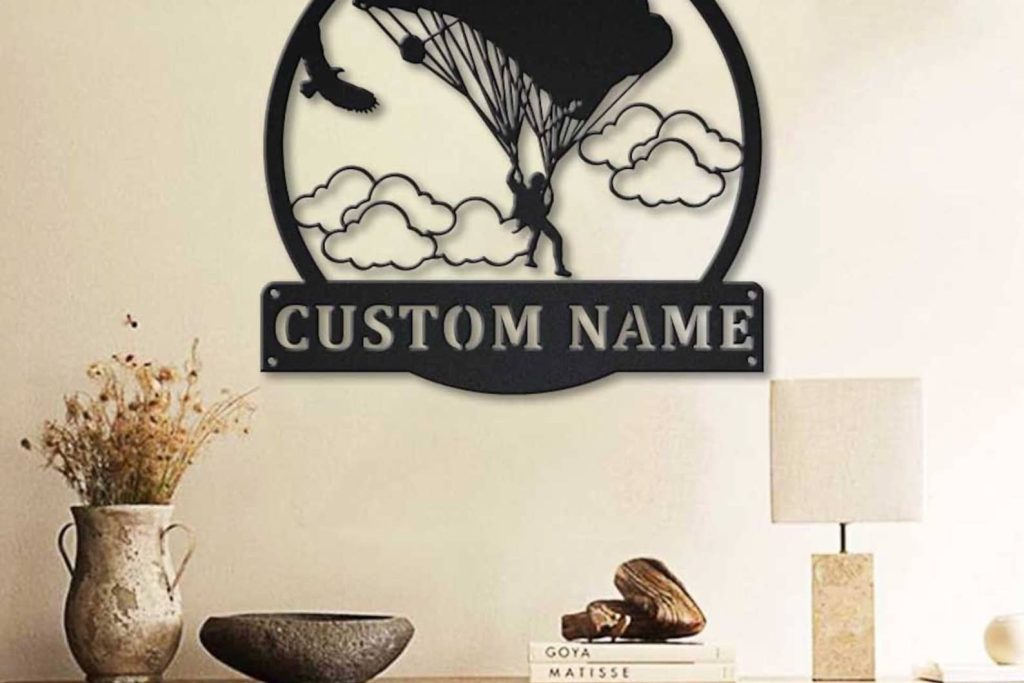 Be the first to review “Parachuting Skydiving Monogram Metal Sign – Custom”