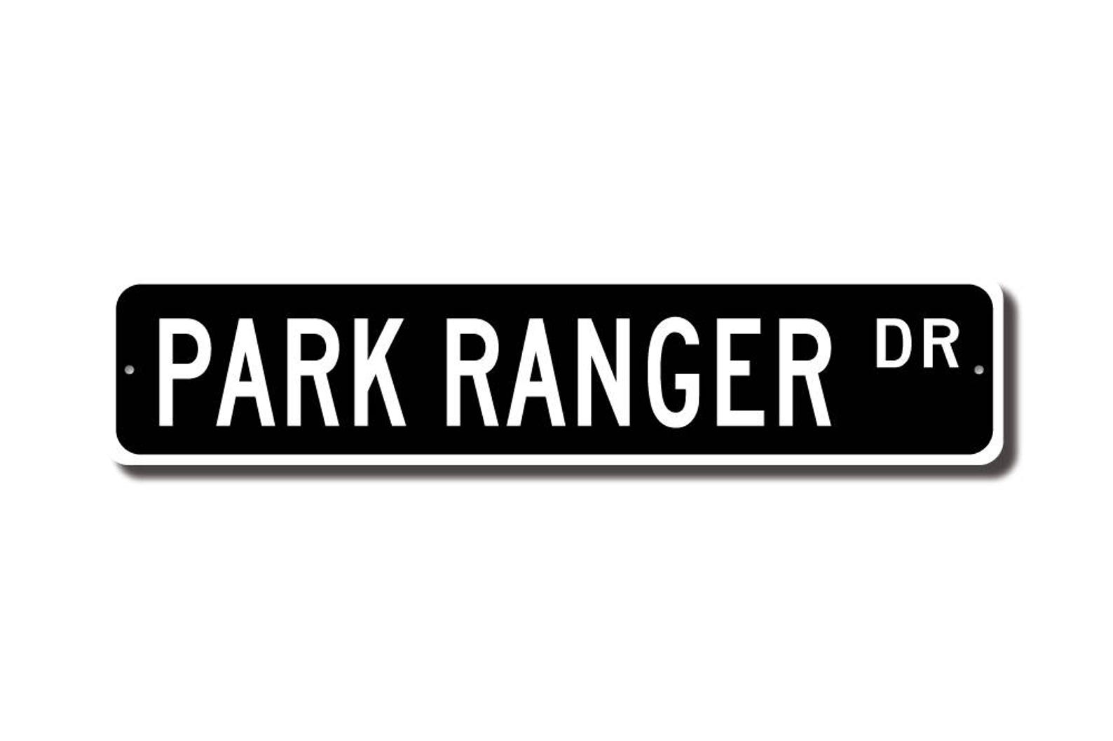 Park Rangers check out this awesome street sign! This will make the perfect piece for any Park Ranger or maybe you are a Park Ranger looking for a cool decor piece. Made of premium aluminum it will stand the test of time. This sign will look great in any room, home den, cave, or office! Get this sign for your favorite Park Ranger !