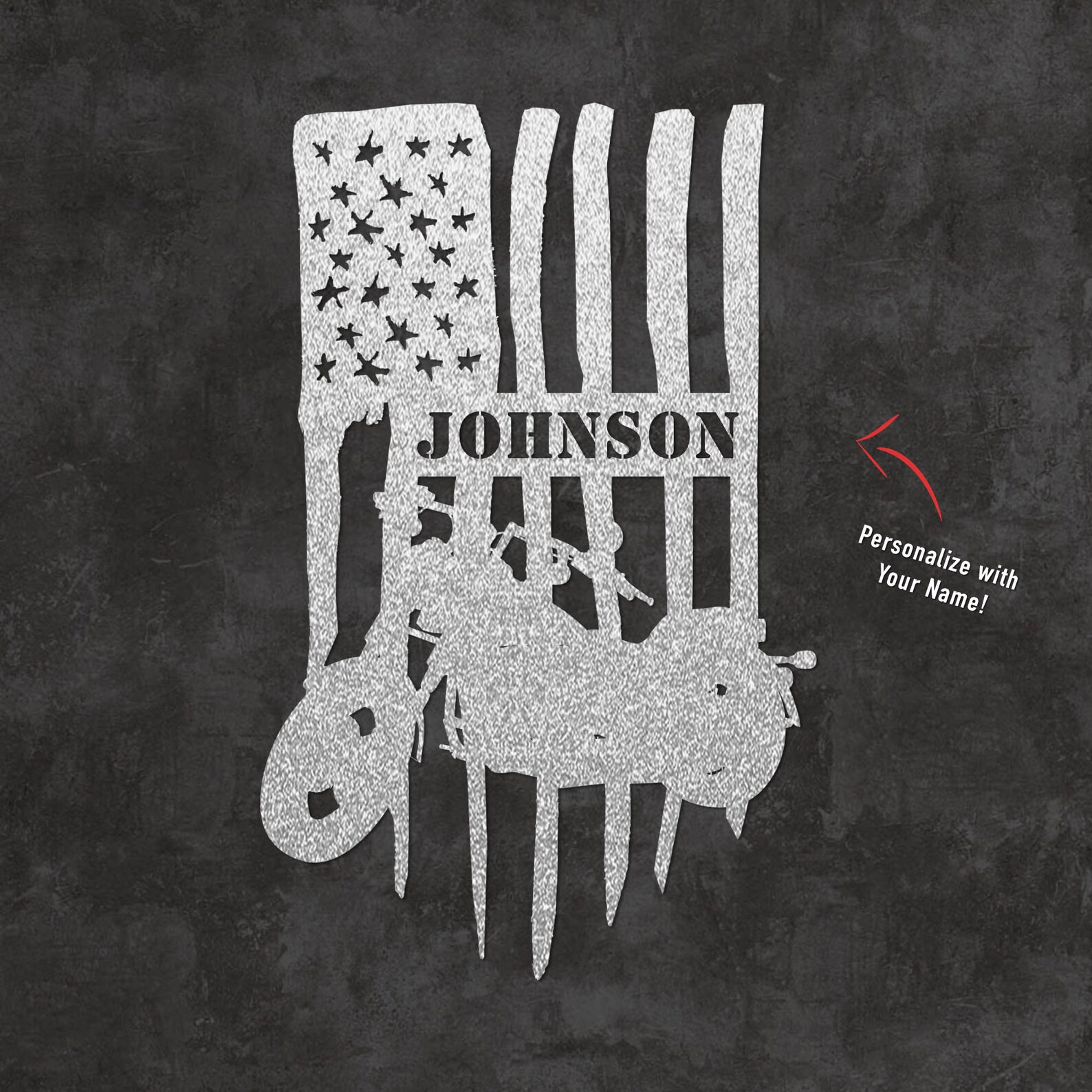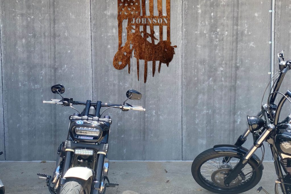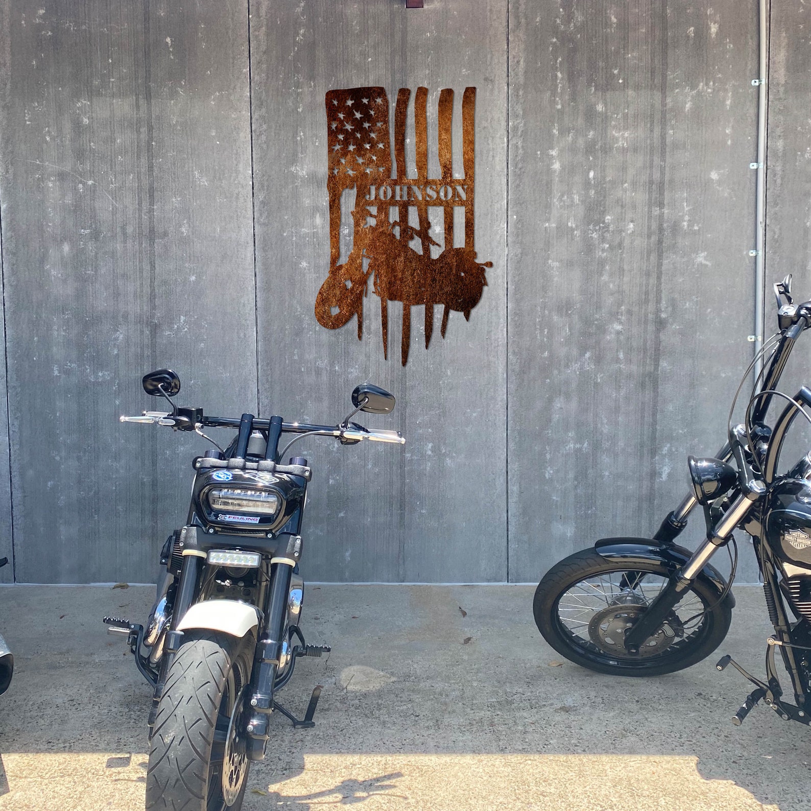 Biker Sign Metal Wall Art To Be PERSONALIZED – Patriot Flag With Family Name