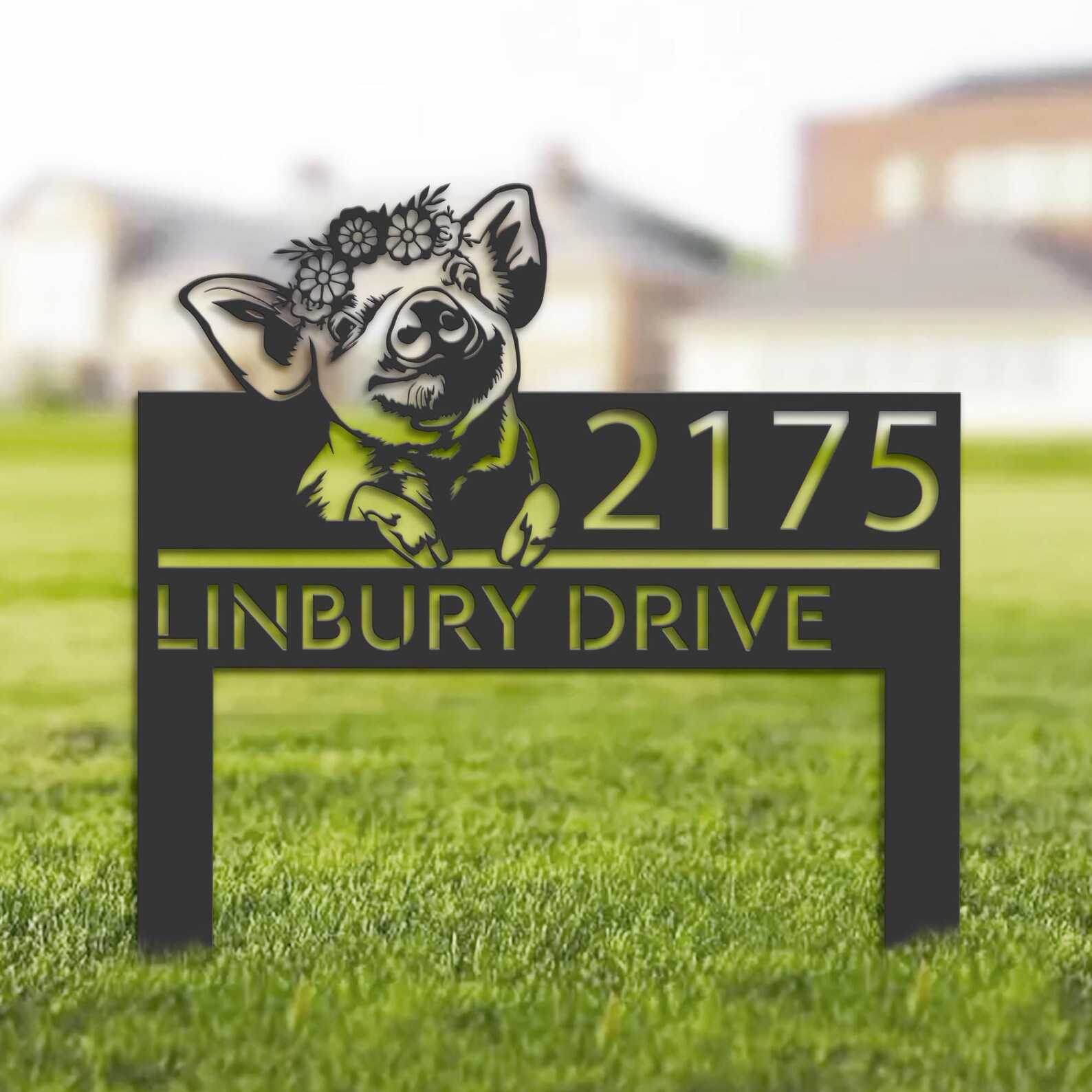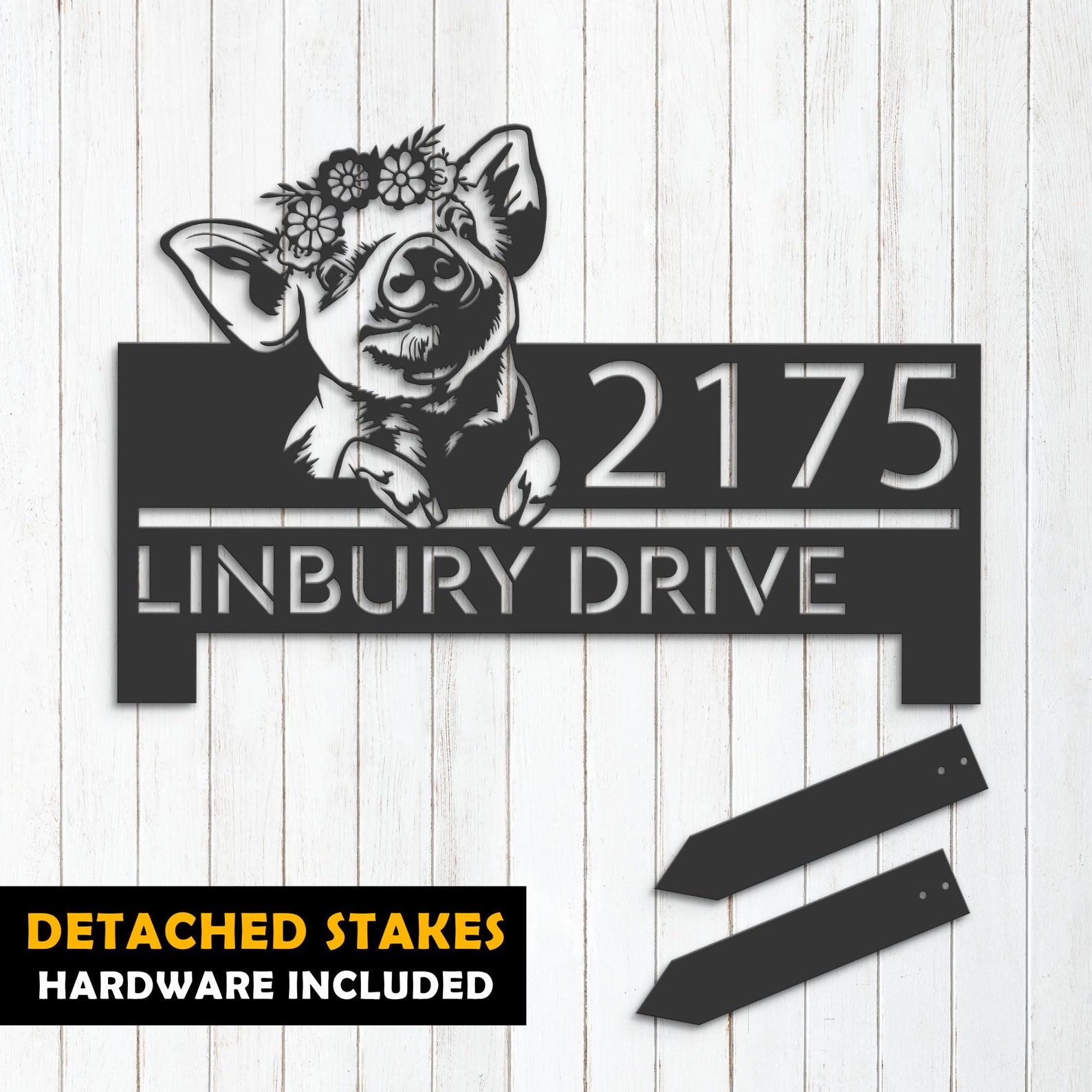 Be the first to review “Peeking Pig Farmhouse Metal Address Sign”