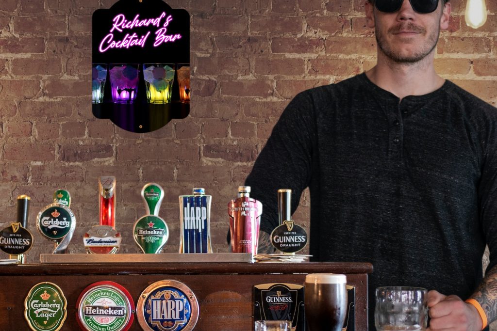 Be the first to review “Personalised Cocktail Bar Sign – Man Den Pub, Home Wall Mounted Aluminium”