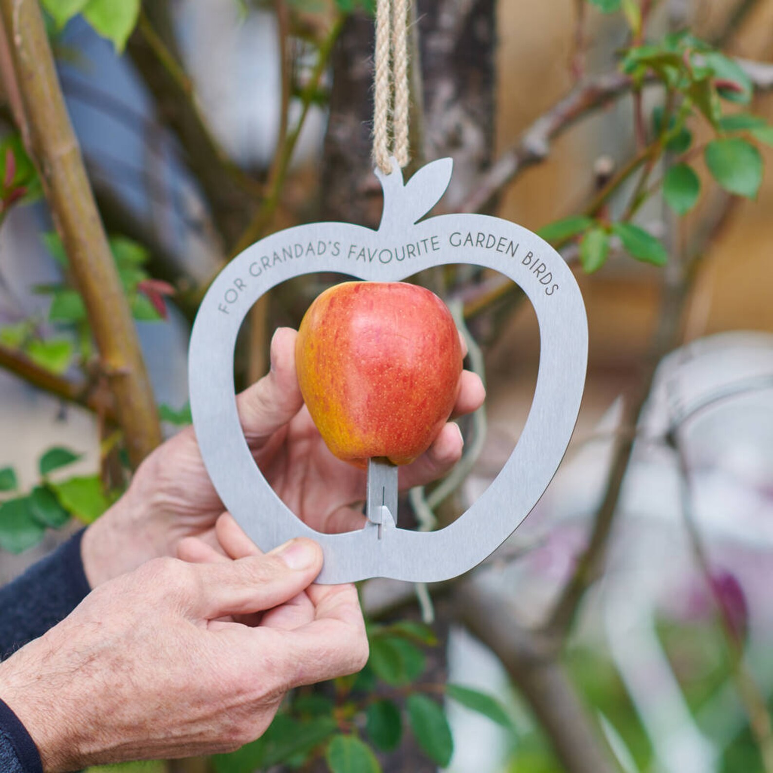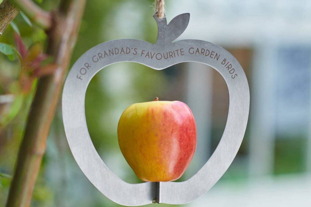 This unique and personalised apple bird feeder is the perfect addition to every bird lovers garden.