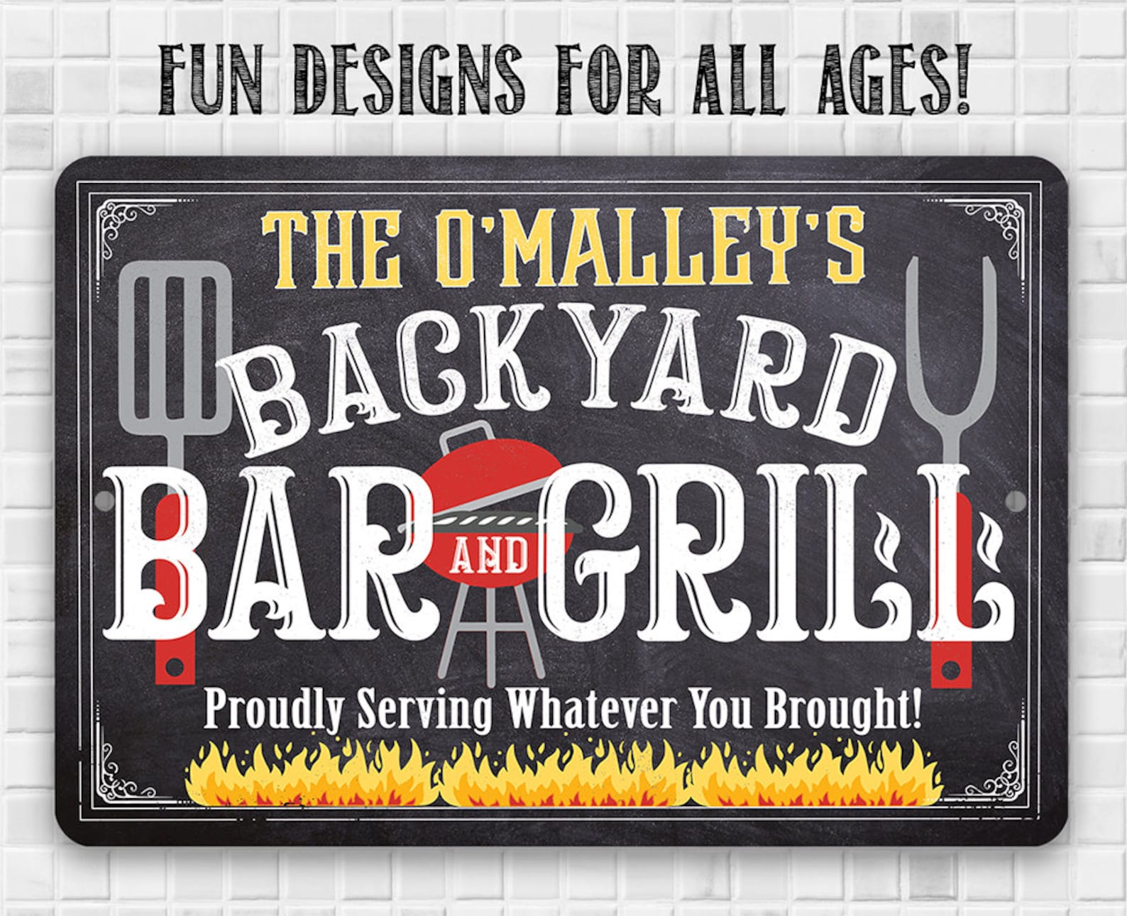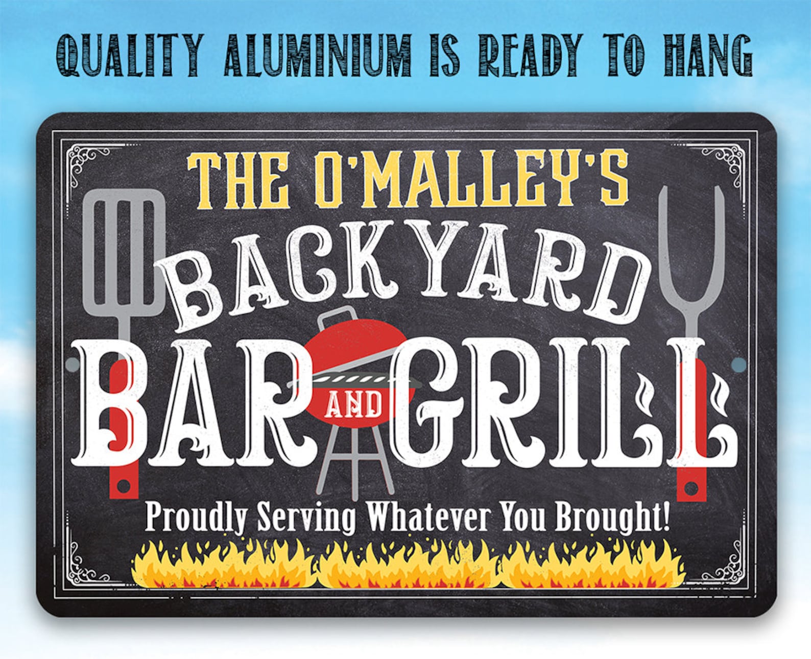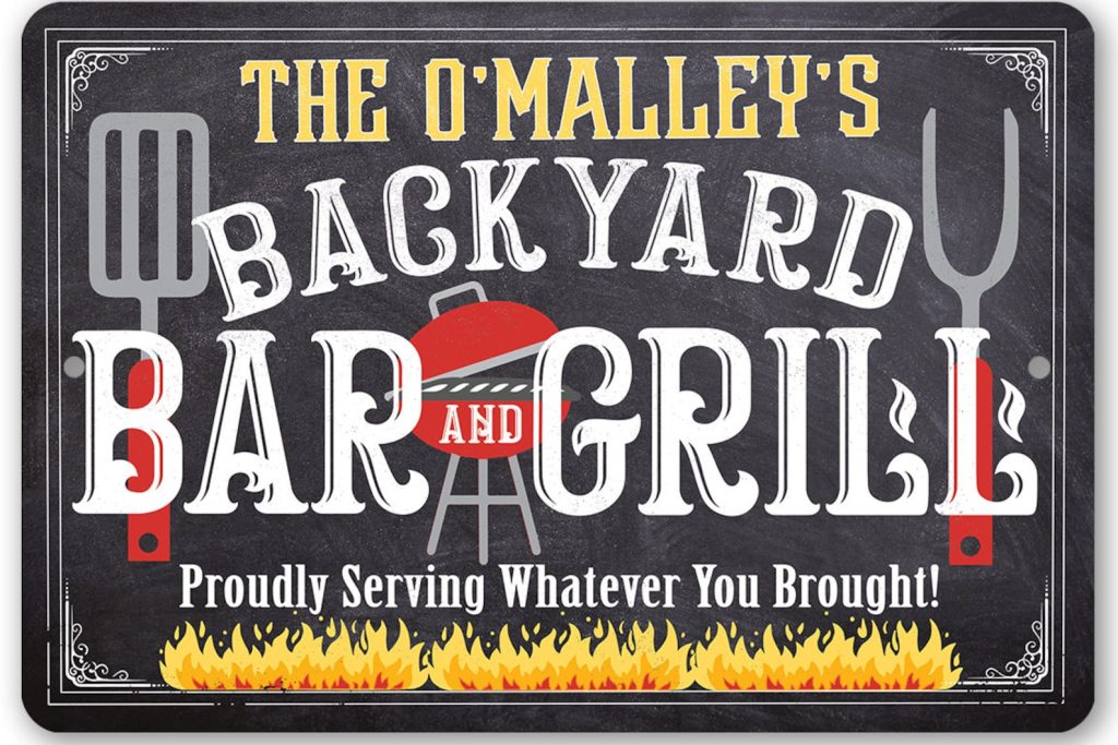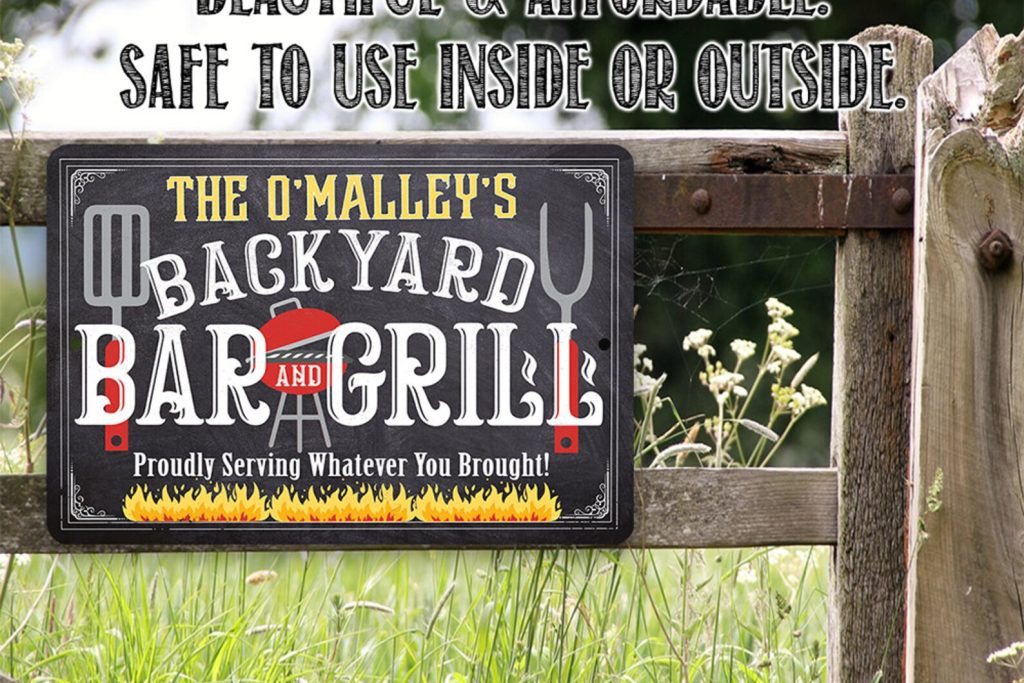 Be the first to review “Personalized Backyard Bar and Grill Metal Sign with Chalkboard Look”
