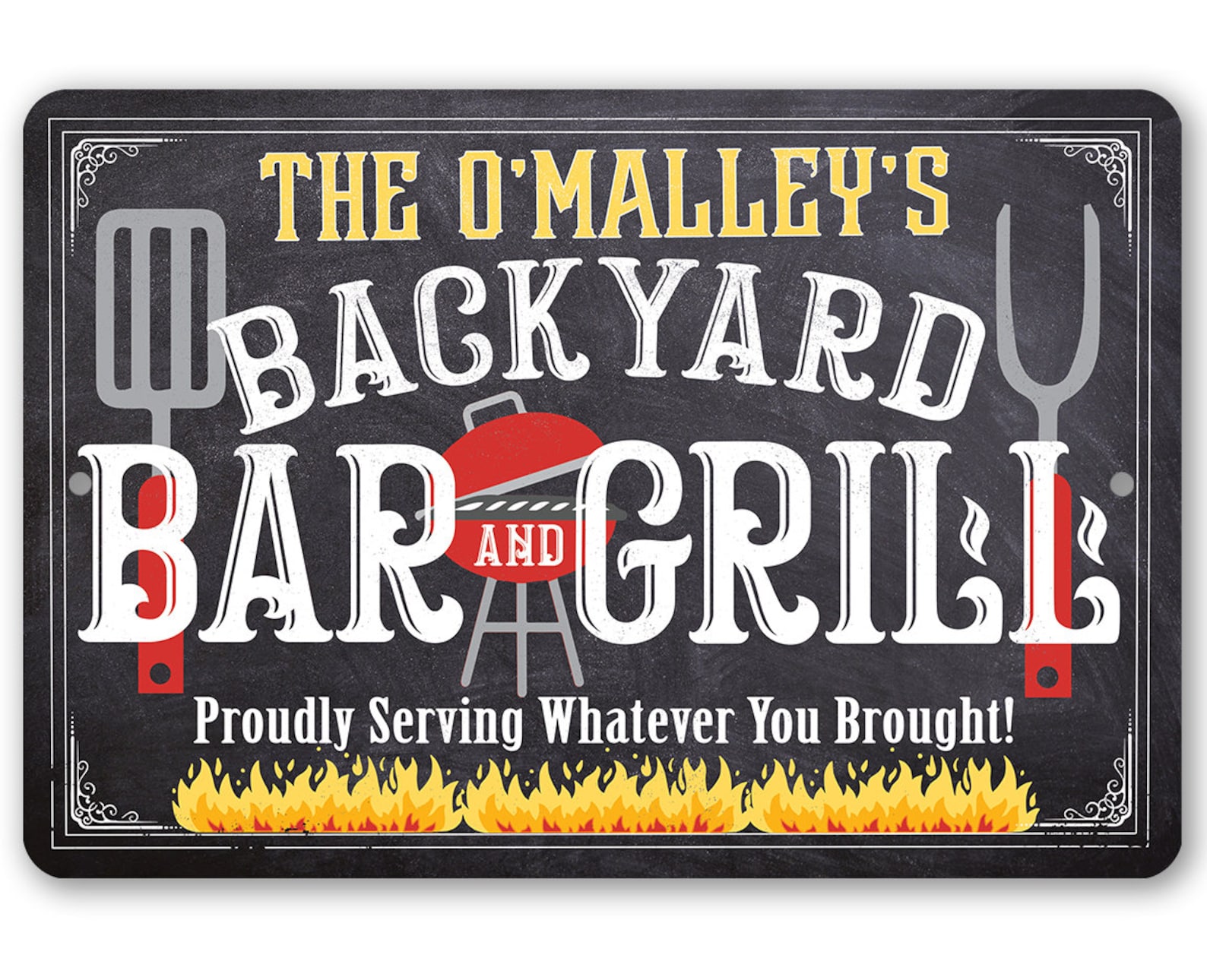 Personalized Metal Sign – Backyard Bar and Grill (Chalkboard Look) – Tin – 8" x 12" or 12" x 18" Indoor/Outdoor – BBQ Grill Decor