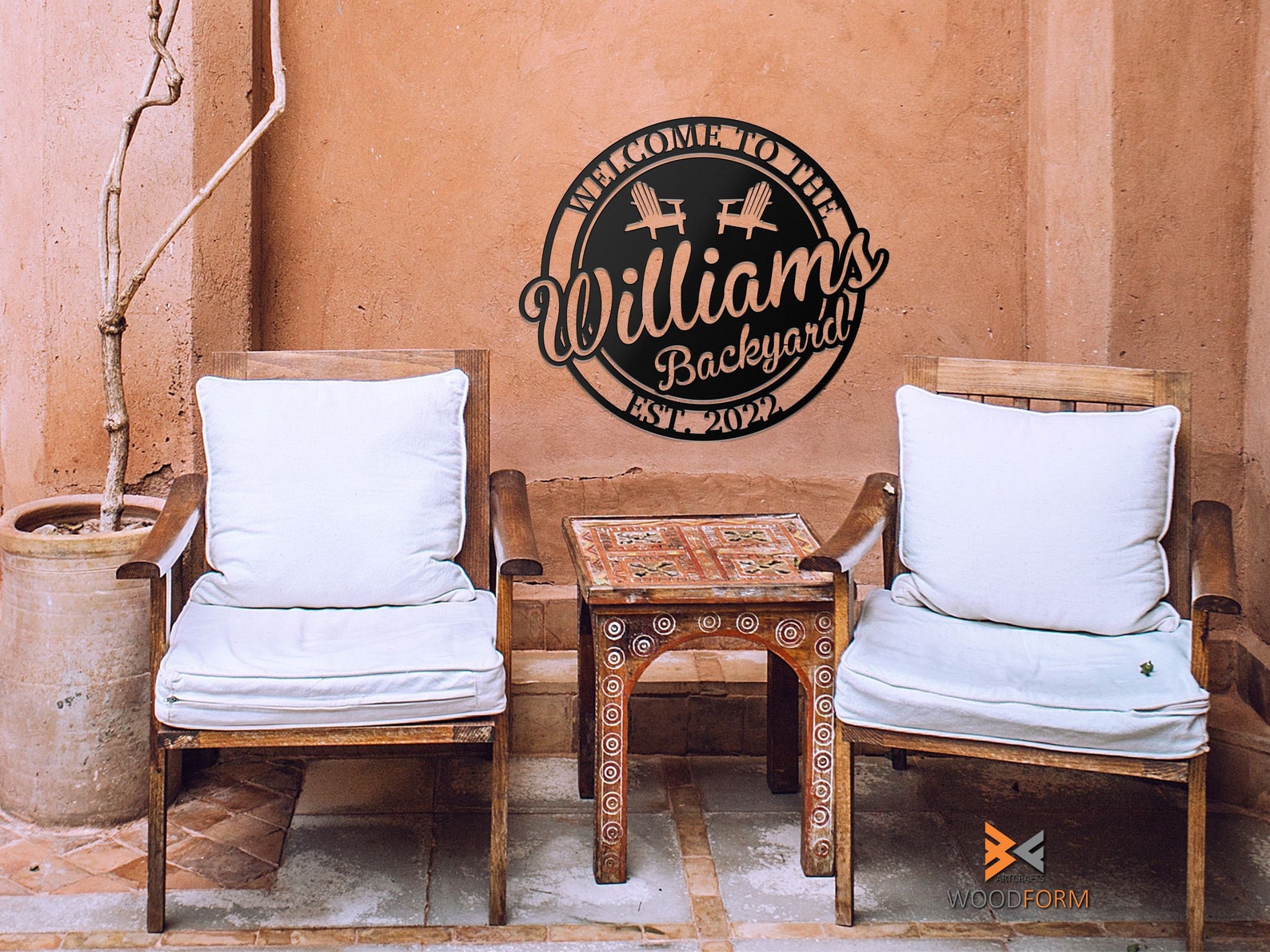 Beautiful Personalized Patio Metal Sign. Whether you are gifting or buying one for yourself, this cute wall decor sign will be the perfect addition to any patio or house backyard . Creative gift for a Family or Friend, a Wedding, or Anniversary, this romantic wall art adds a personal touch to your wall or home decor.
