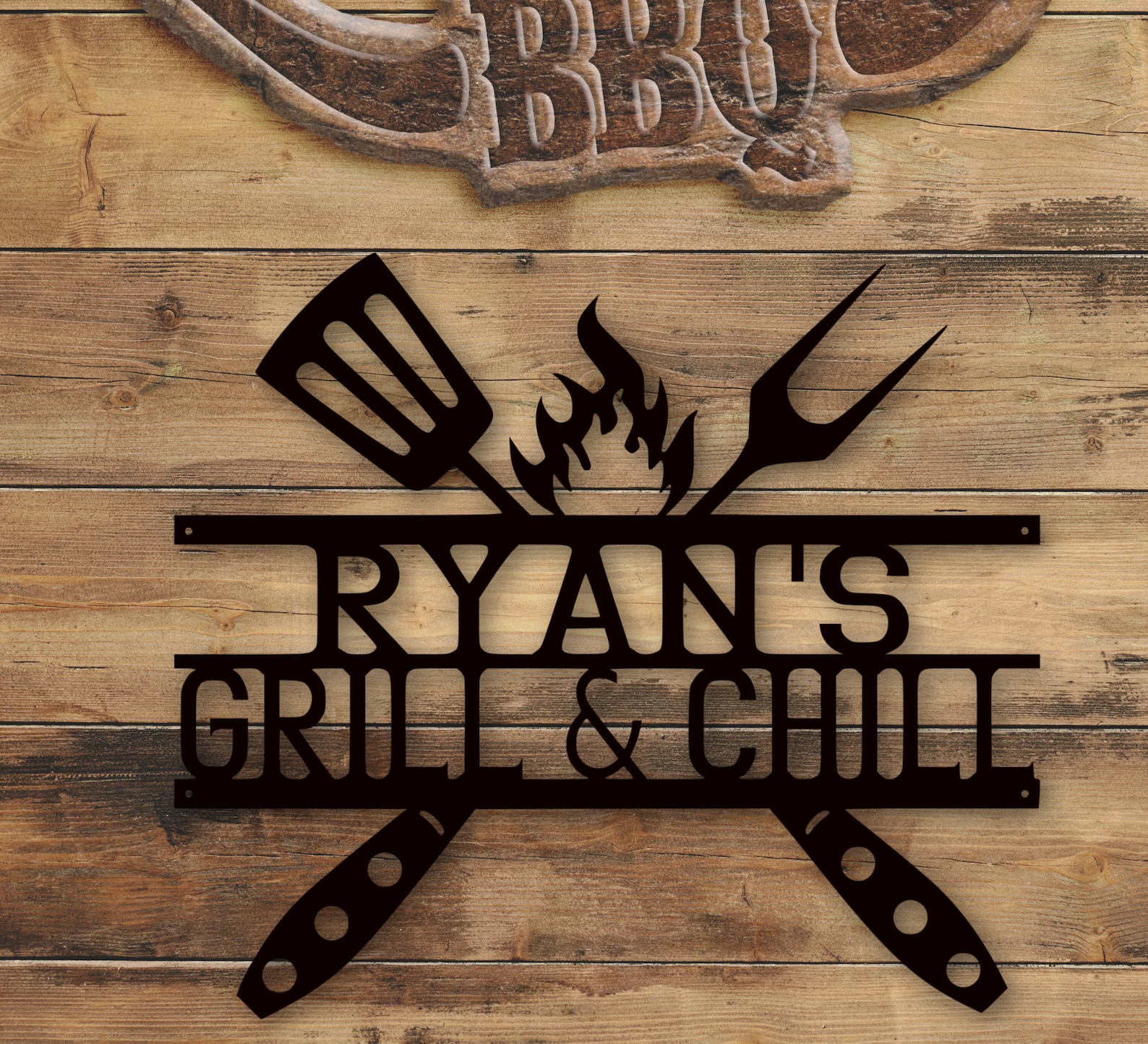 Personalized Bar & Chill Metal Sign | Custom Smoker And Grill Wall Art | Grill and Chill Outdoor Kitchen Sign | Backyard Decor | New Home Gift