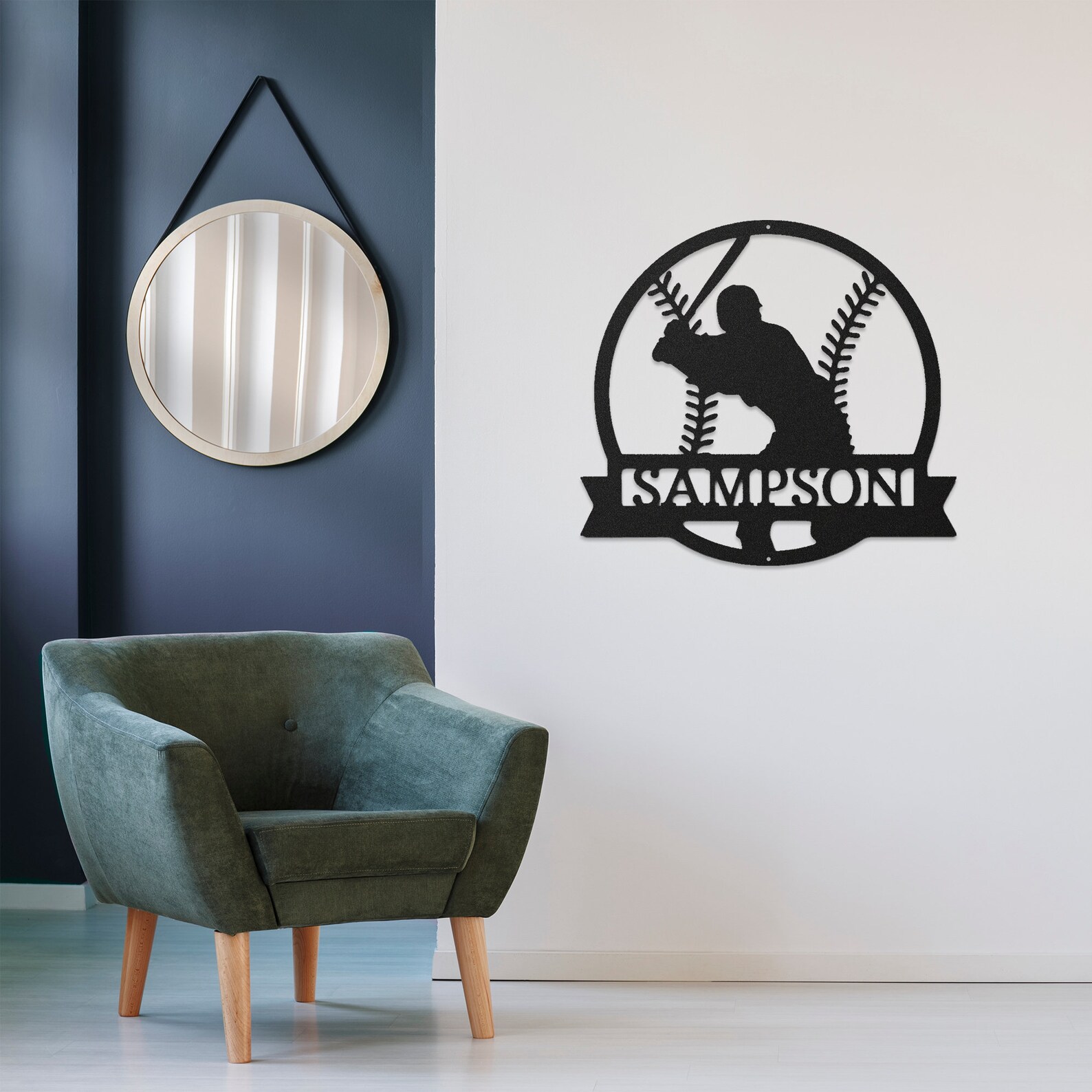 – This personalized Metal Baseball Sign is the perfect piece to decorate your home or personal space! This Baseball Metal Wall Art will look impressive anywhere in your home, inside or out!