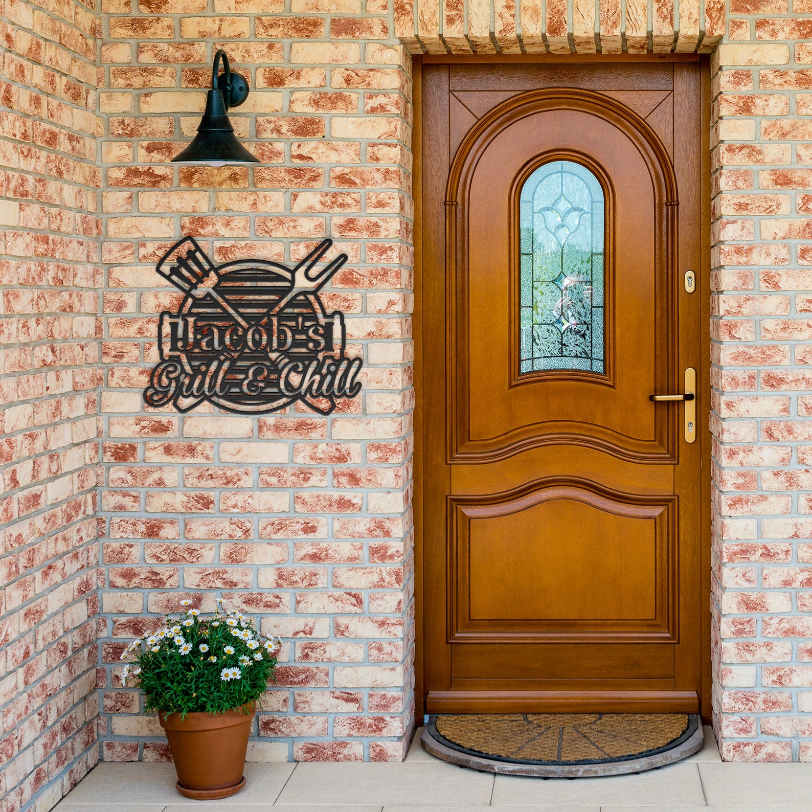 Elevate your outdoor cooking and entertaining space with this personalized "Grill and Chill" sign. Crafted with a combination of rustic charm and modern style, this metal sign adds a touch of personality to your grill area or backyard oasis. Personalize it with your name or a custom message to make it uniquely yours. Hang it near your grill or outdoor kitchen to create a welcoming atmosphere for friends and family to gather and enjoy delicious meals together. The bold typography and grill utensil accents highlight the passion for grilling and the joy of rela gatherings. Whether you9;re firing up the grill for a casual cookout or hosting a backyard BBQ party, this personalized "Grill and Chill" sign sets the tone for laid-back enjoyment and memorable moments in your outdoor haven.