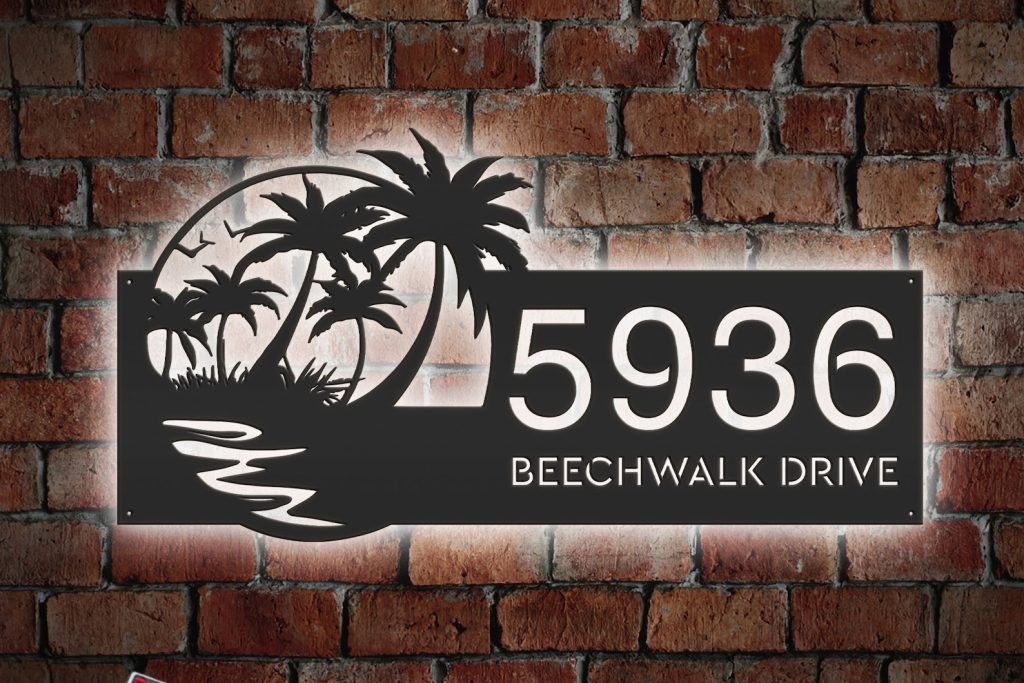 Be the first to review “Personalized Beach Scene Metal Address Sign with LED Lights”