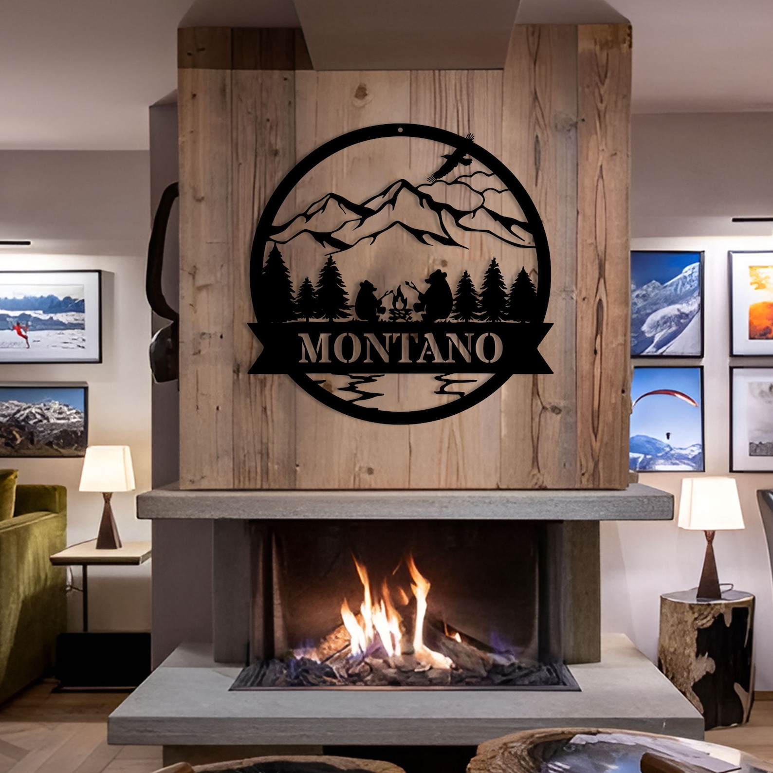 Bear Campfire Metal Sign,Great Outdoor,Bear In Woods Cabin Sign,Family Name Black Bear Sign,Personalized Bear Sign,Metal Wall Art