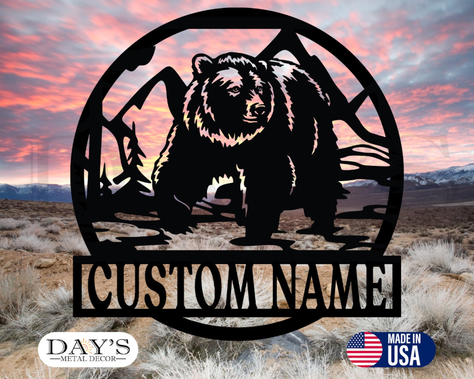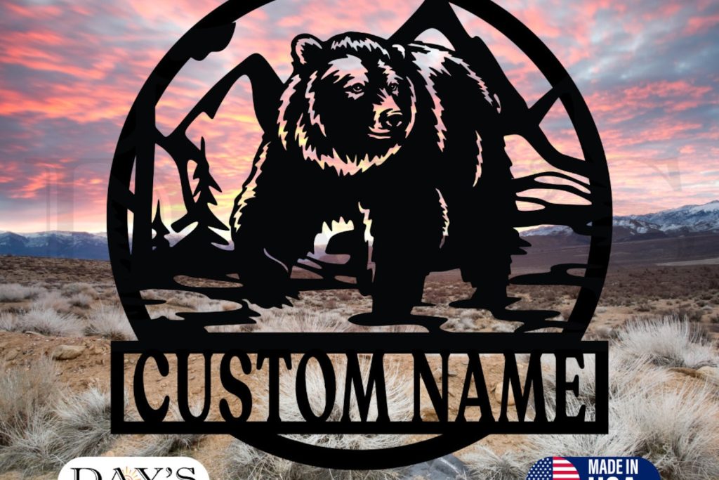 Be the first to review “Personalized Bear Metal Sign, Outdoor Decor”