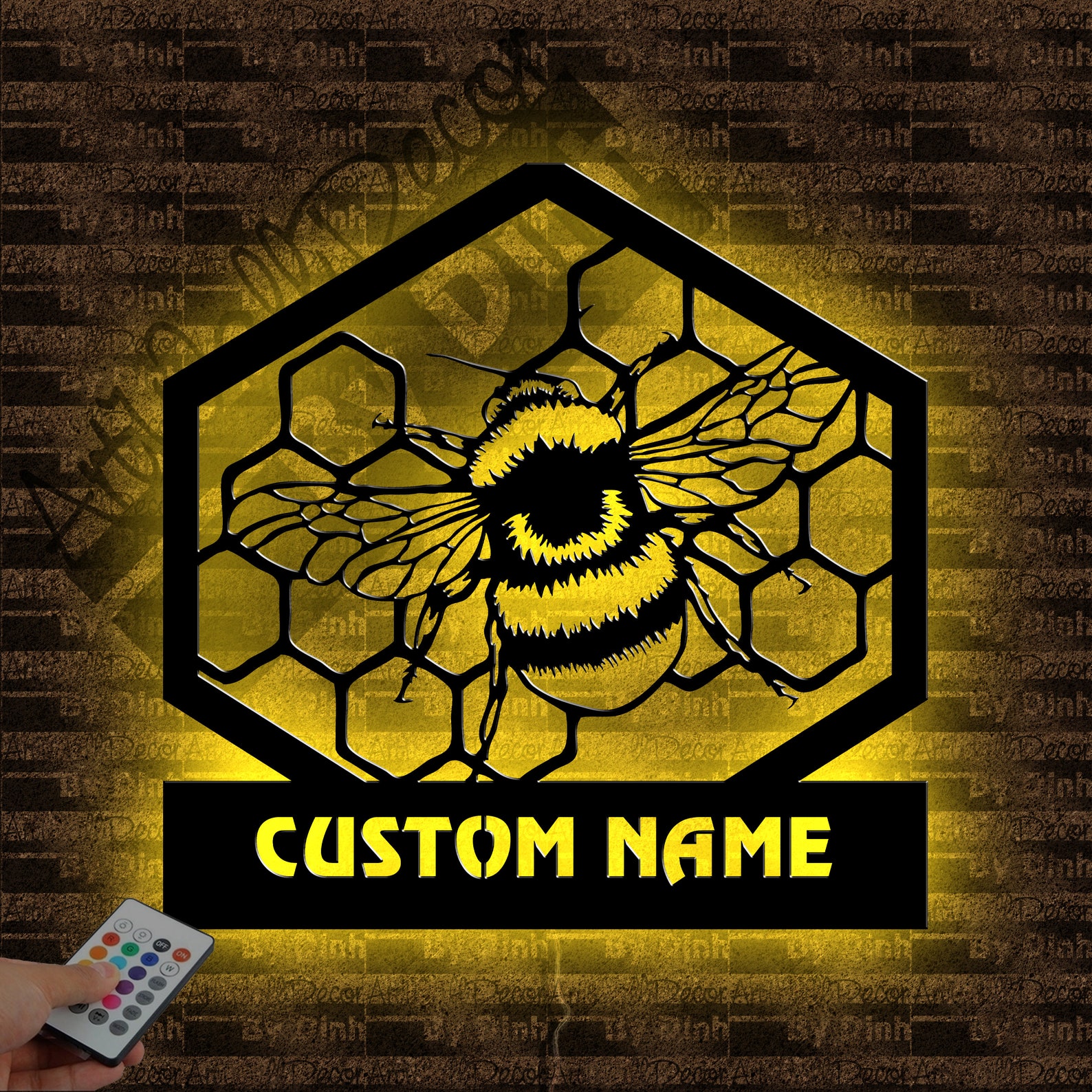 Be the first to review “Personalized Bee Metal Wall Art – LED Light, Honeycomb Decor”