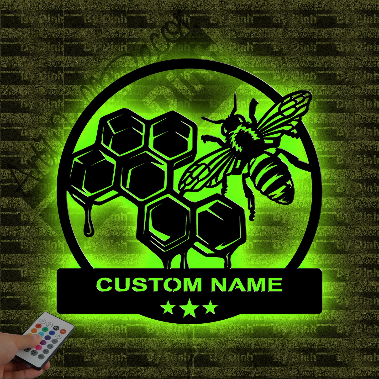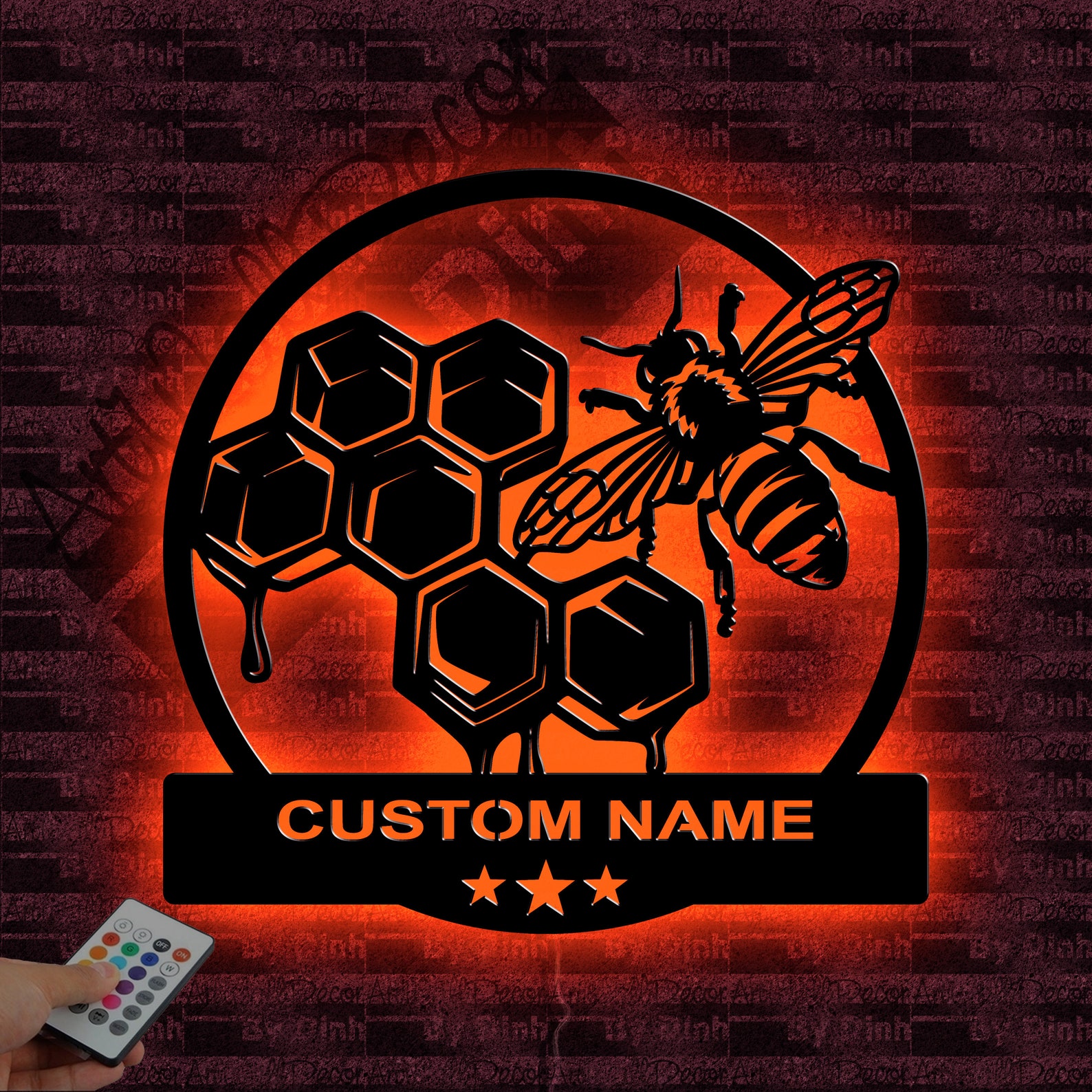 Be the first to review “Personalized Beehive Metal Sign with LED – Honeycomb Decor”