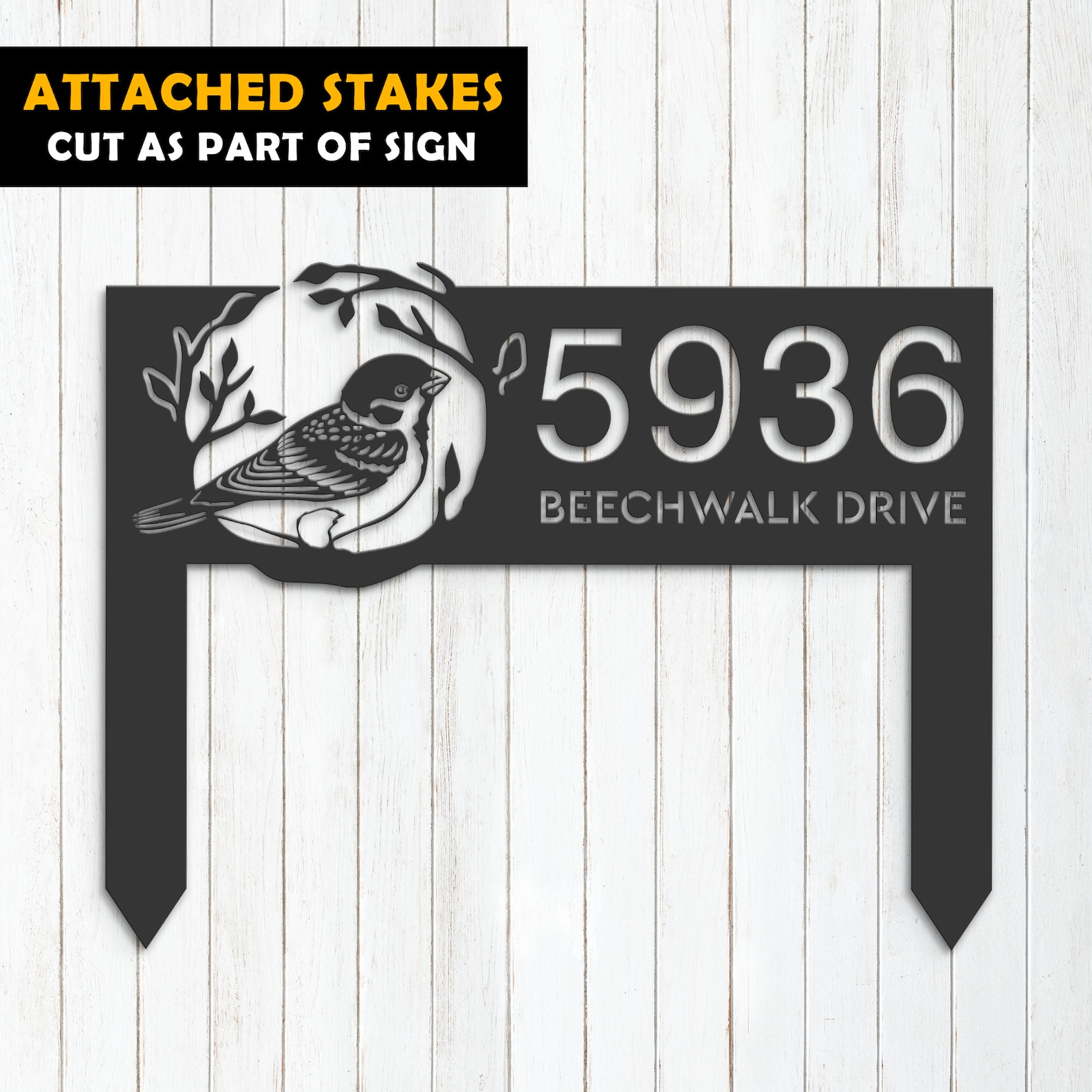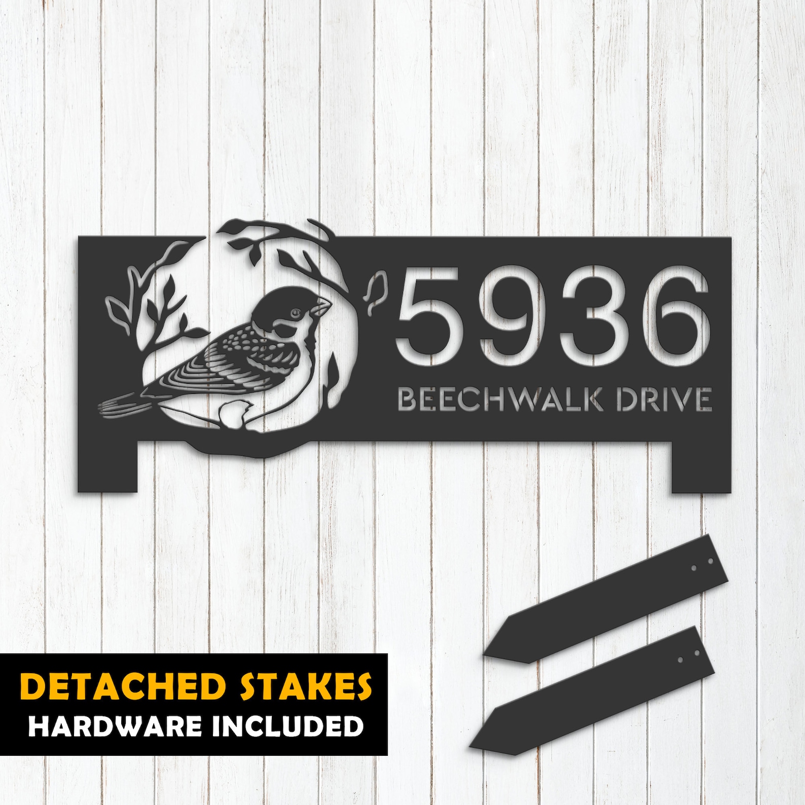 Personalized Bird on Tree Branch Metal Address Plaque