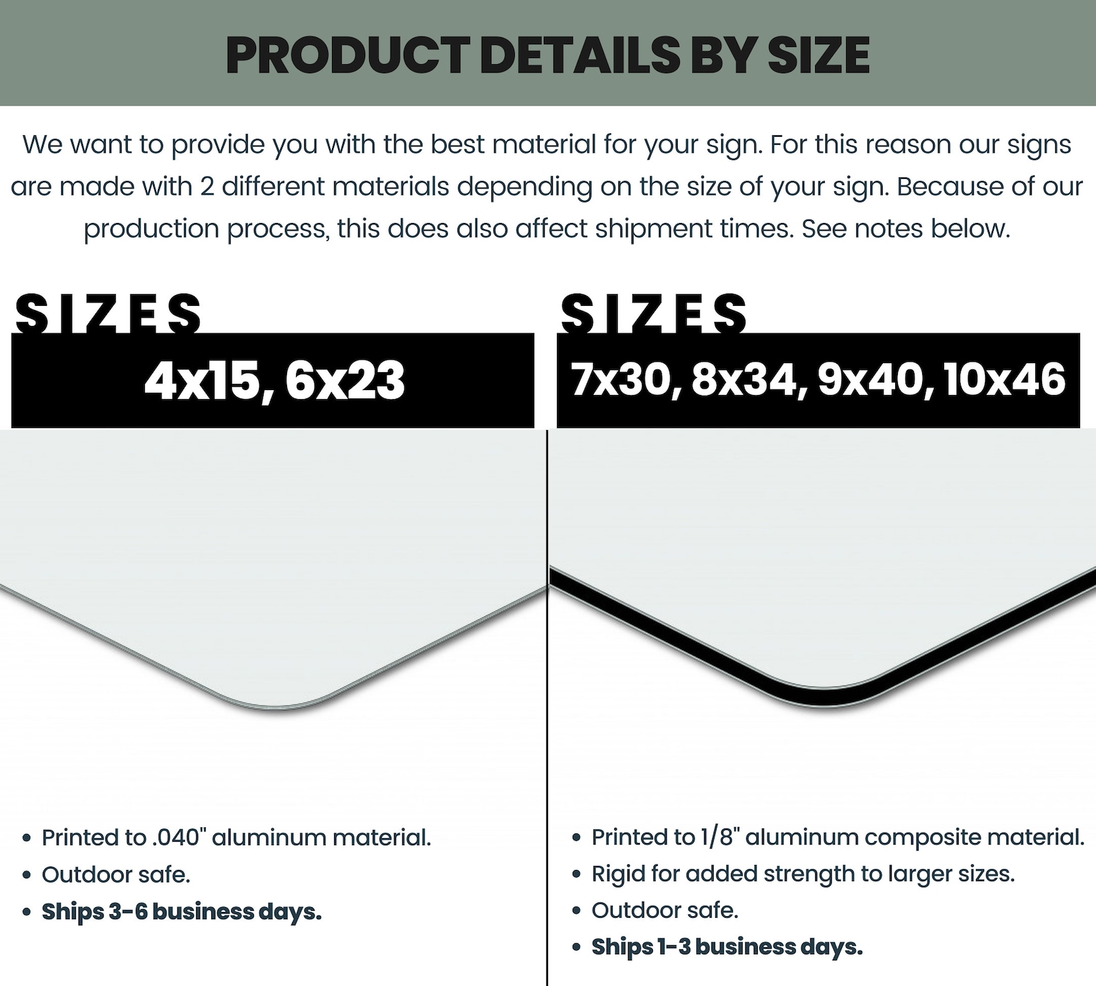 Often used for custom sign for business, rental property signage, gift giving, directional signs, custom sign outdoor, wayfinding signs, warning signs, parking signs, yard signs, school signage, logo signs, street signs, exhibit and display signs, pet enclosures, insides jokes, personalize metal sign, general labeling and more! Unleash your creative potential with our custom metal signs.