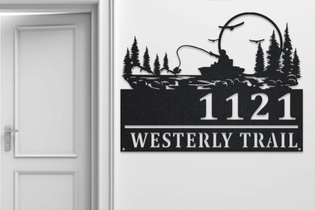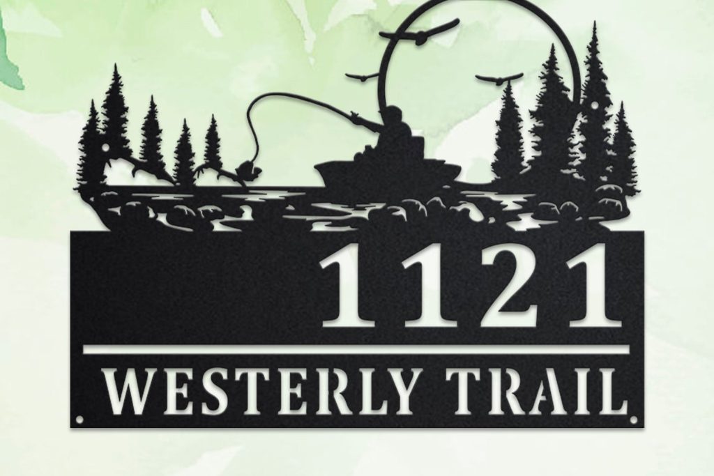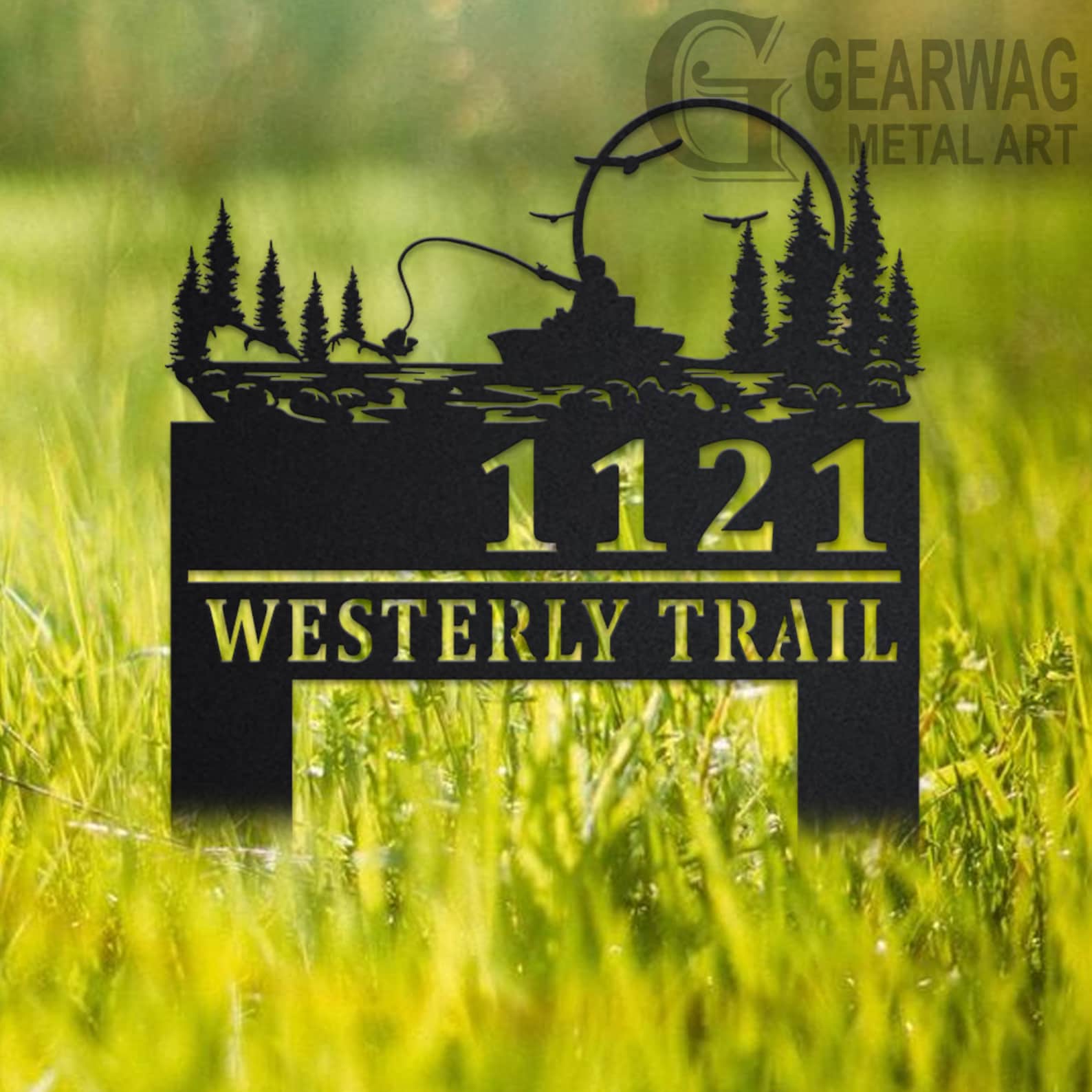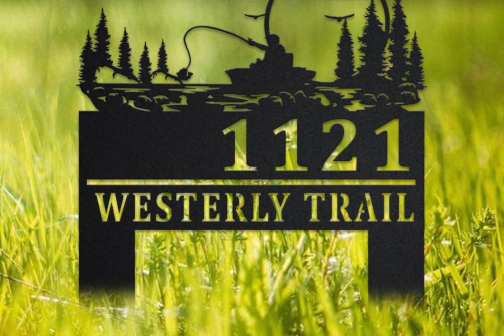 Personalized Boat Fishing Metal Address Plaque – Outdoor Yard Sign